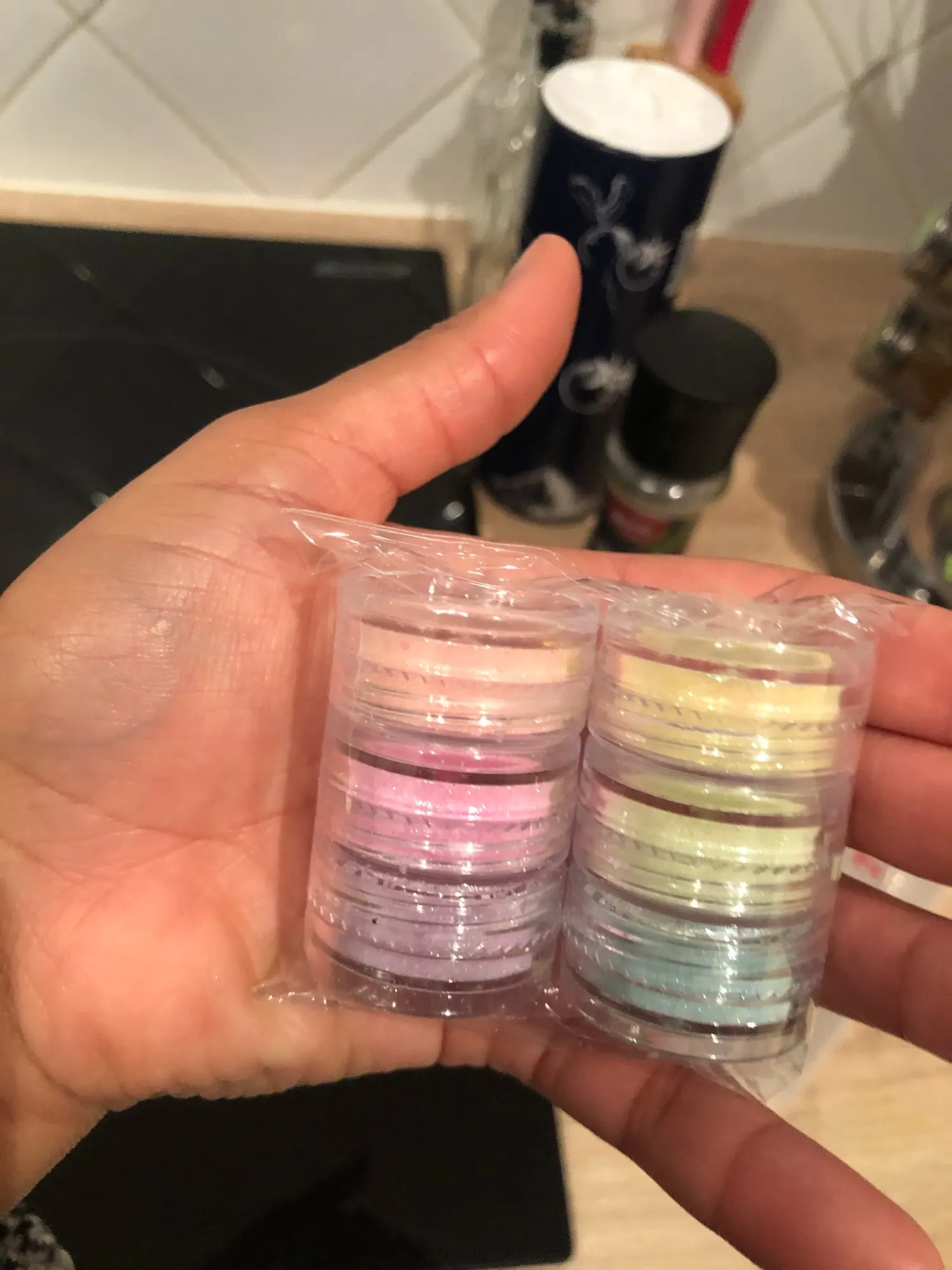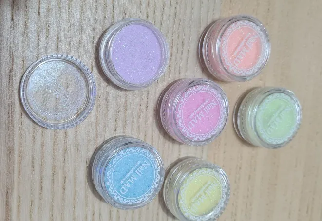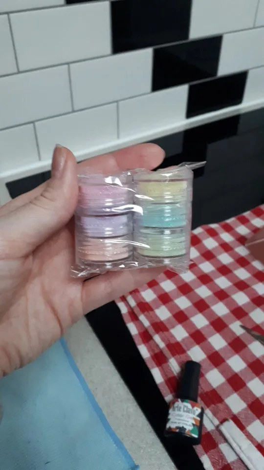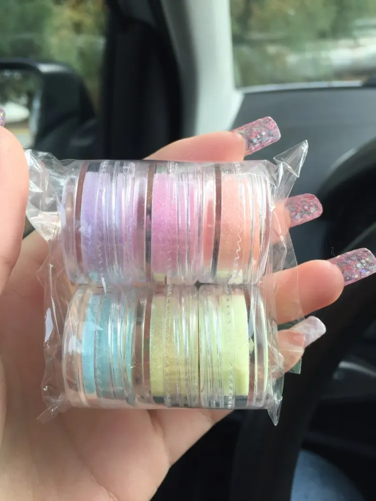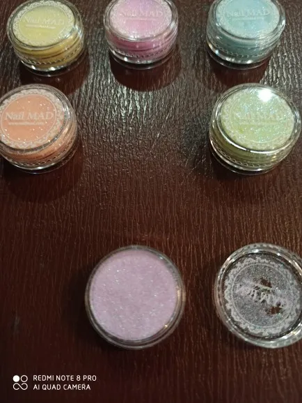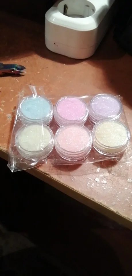 Блестки очень тонкие! Идеально подходит для эффекта сахара или даже под верхним слоем. Симпатичные цвета и получили довольно быстро.