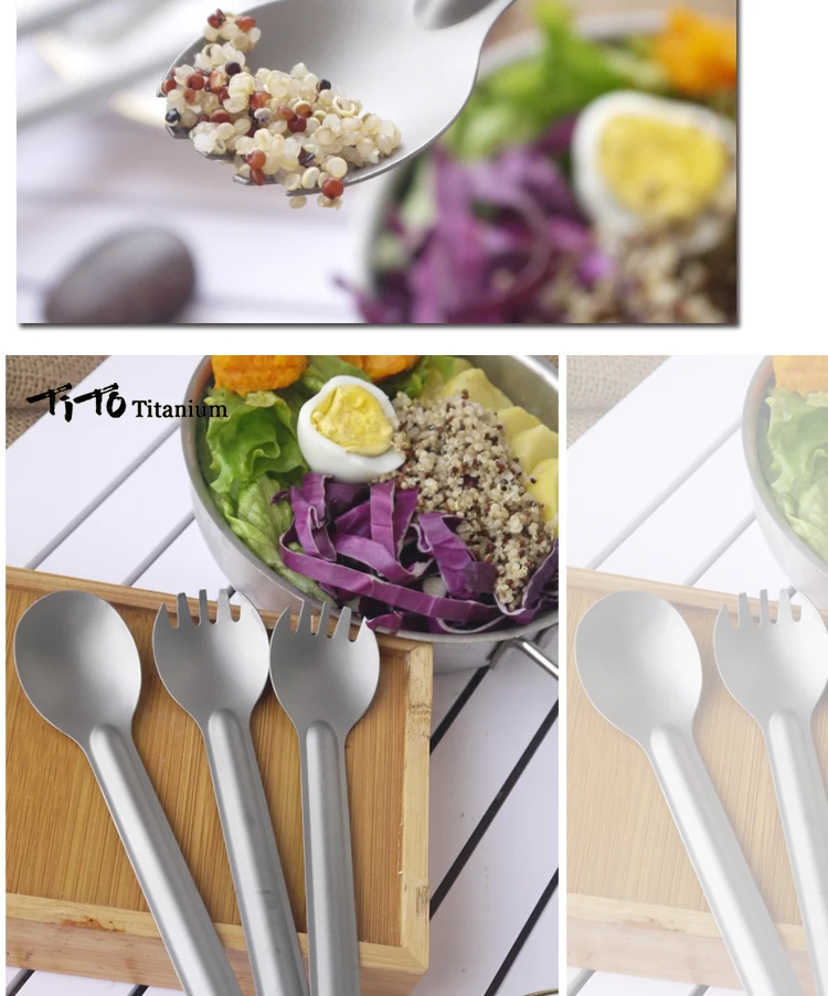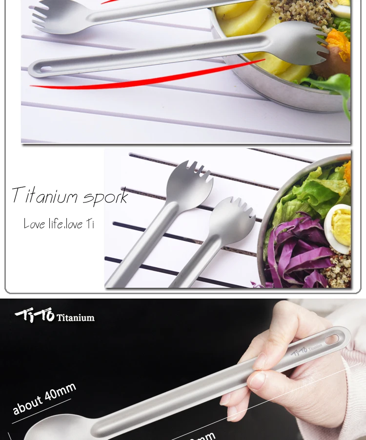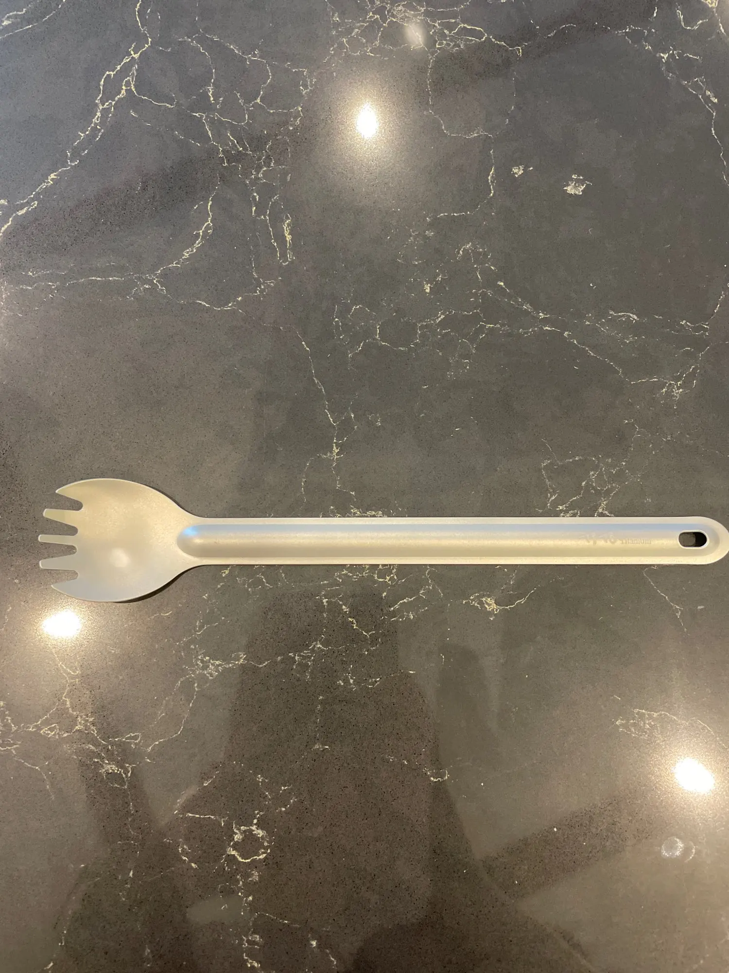 Купил все три титановые Длинные Ложки и оба вида ложек. Это моя вторая покупка трех. Использовал первый набор в обратном пути и был очень доволен. Изначально считалось, что spork будет наиболее используемой кухонной утварью, однако ложка с большим углом использовалась больше всего. Идеально подходит для достижения дна обезвоженных пищевых мешков. Спортивная одежда была удобной в нескольких случаях, но не использовала так сильно, как ожидалось. Все очень легкие и прочные. Из-за легкого веса, я буду носить с собой угловую ложку и спорок в будущих походах по альпинизму. Подарите этот набор другу, который очень понравился дизайн.