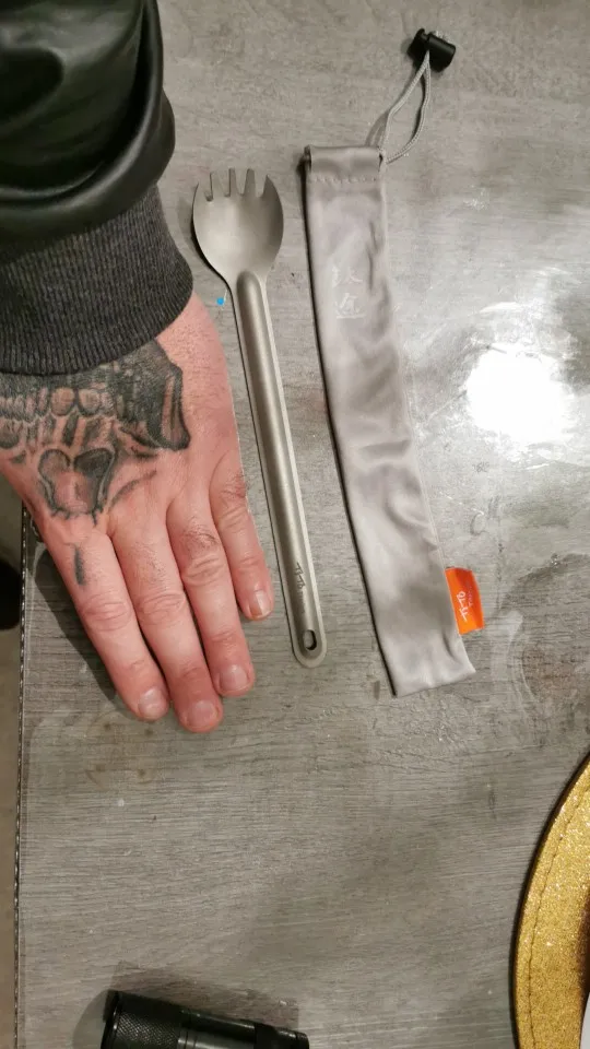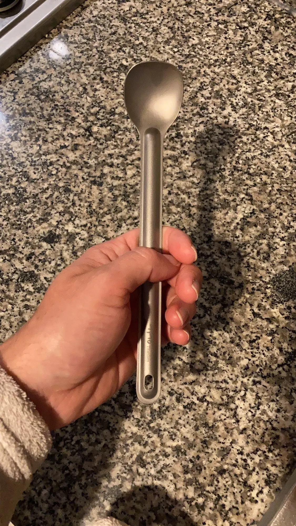 Высококачественная Титановая Ложка, хорошая длина для еды из горного дома. Я планирую анодировать с фонариком, чтобы получить хорошие цвета. Я рекомендую эту ложку, если вам нужна длинная ложка.