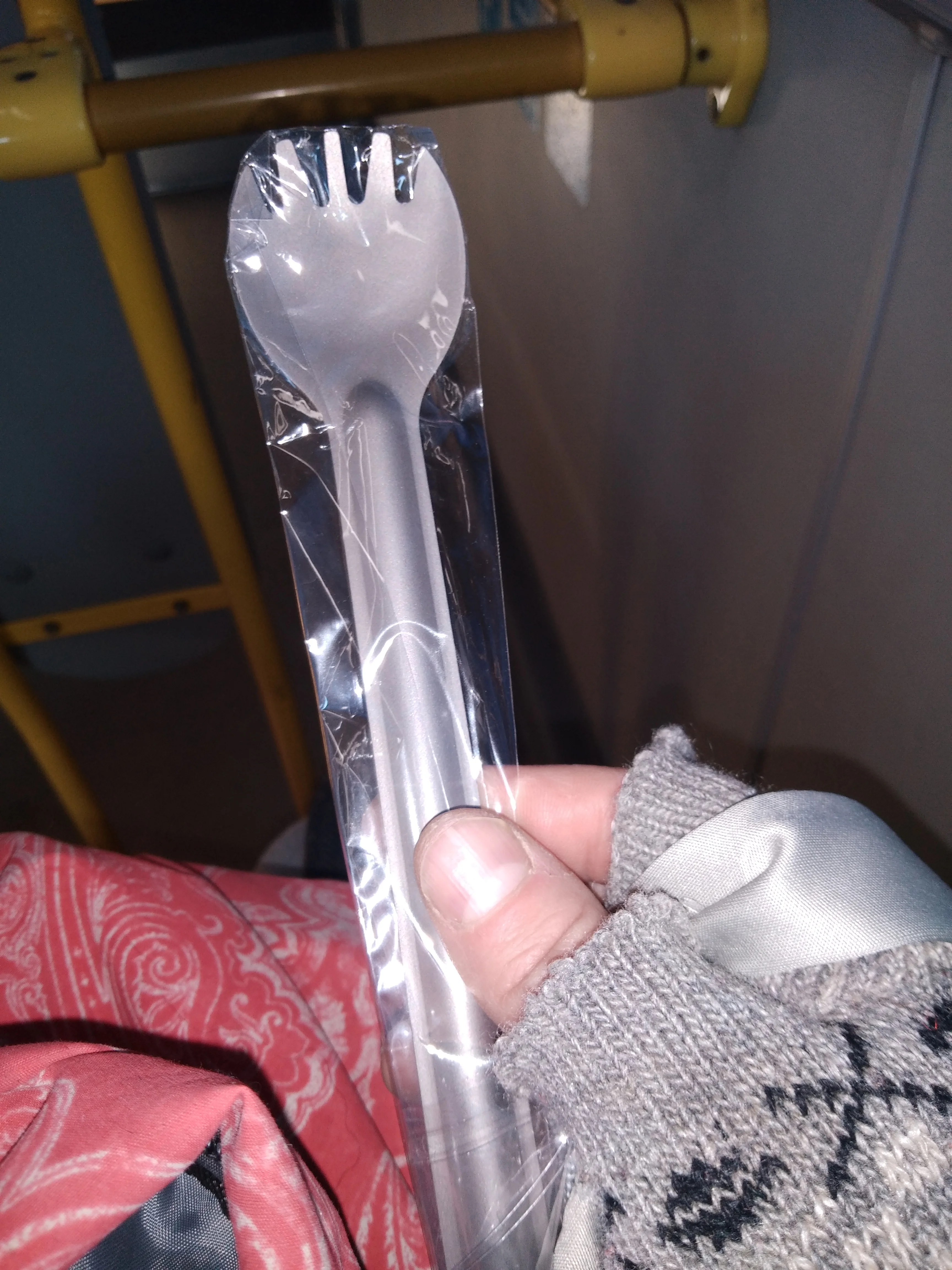 I really liked this spork! It's really lightweight, and well designed. the quality seems very good, the surface is very smooth and it has a thin fabric bag to store the spork. This is very convenient when you are eating freezed dried food, because it is packed in a deep bag, so this spork allow you to take out properly the food at the bottom of the package. I recommend this seller. The shipment only takes 1 month to Chile.