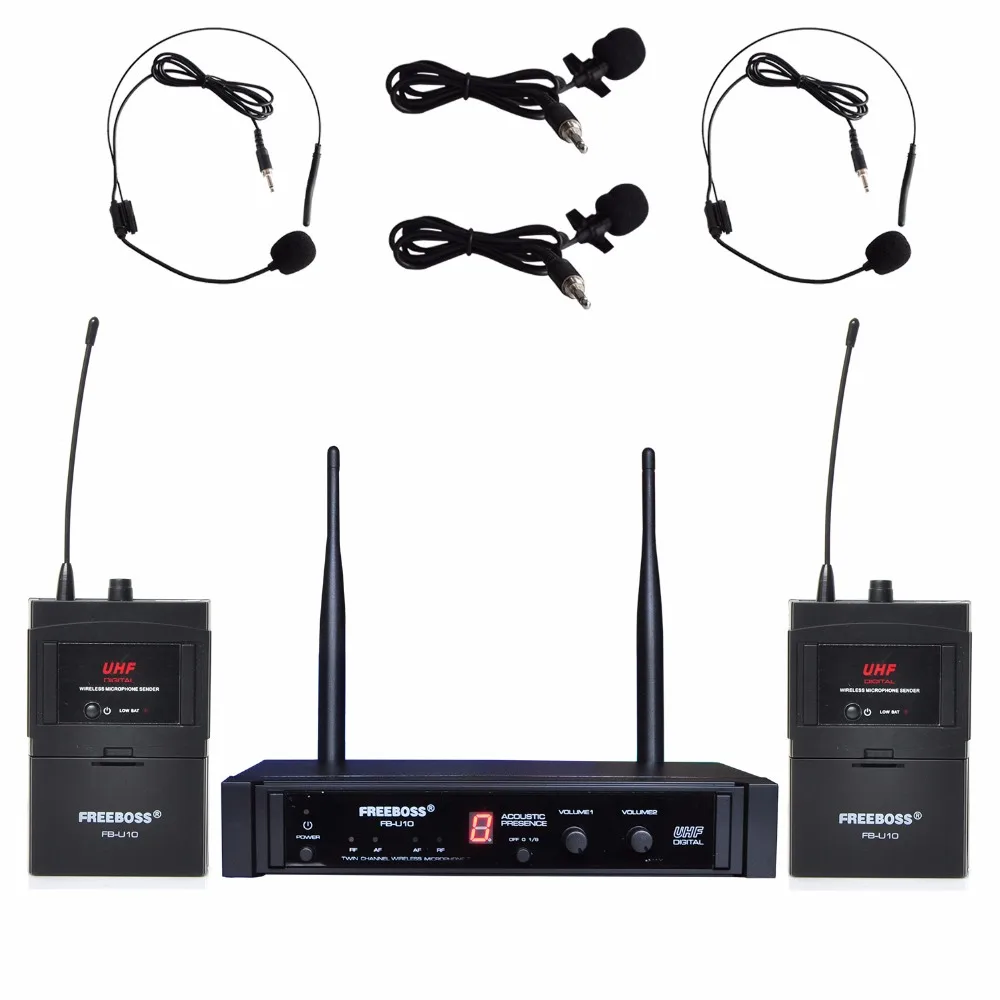 UHF беспроводной микрофон двухсторонний цифровой UHF беспроводной микрофон с 2 лацканами 2 гарнитуры микрофон (2 передатчика Bodypack)