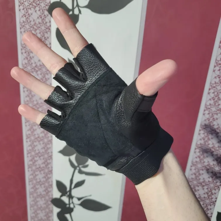 Перчатки мужские кожаные, с открытыми пальцами, с заклепками, панк-перчатки, G135