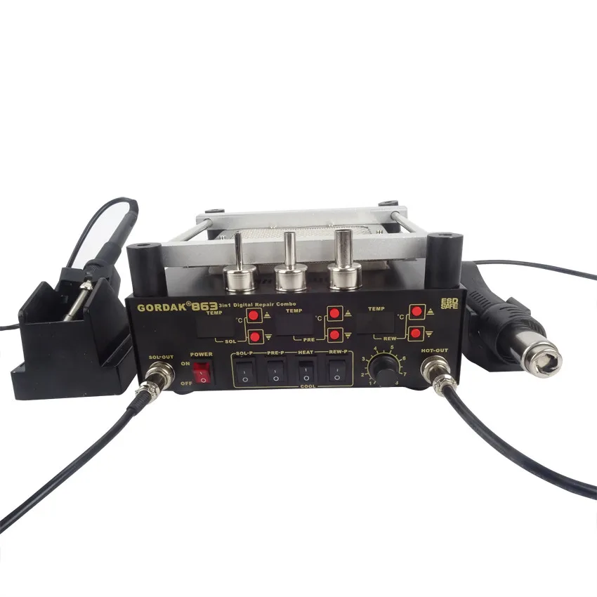 Наладочная станция BGA Gordak 863 3 в 1, тепловая пушка, паяльная станция + Электрический паяльник + Инфракрасная станция предварительного нагрева для ремонта BGA SMD