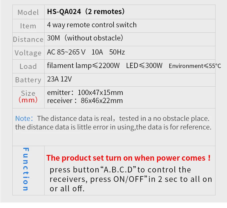 HS-QA024 2N1 4-канальный беспроводной пульт дистанционного управления