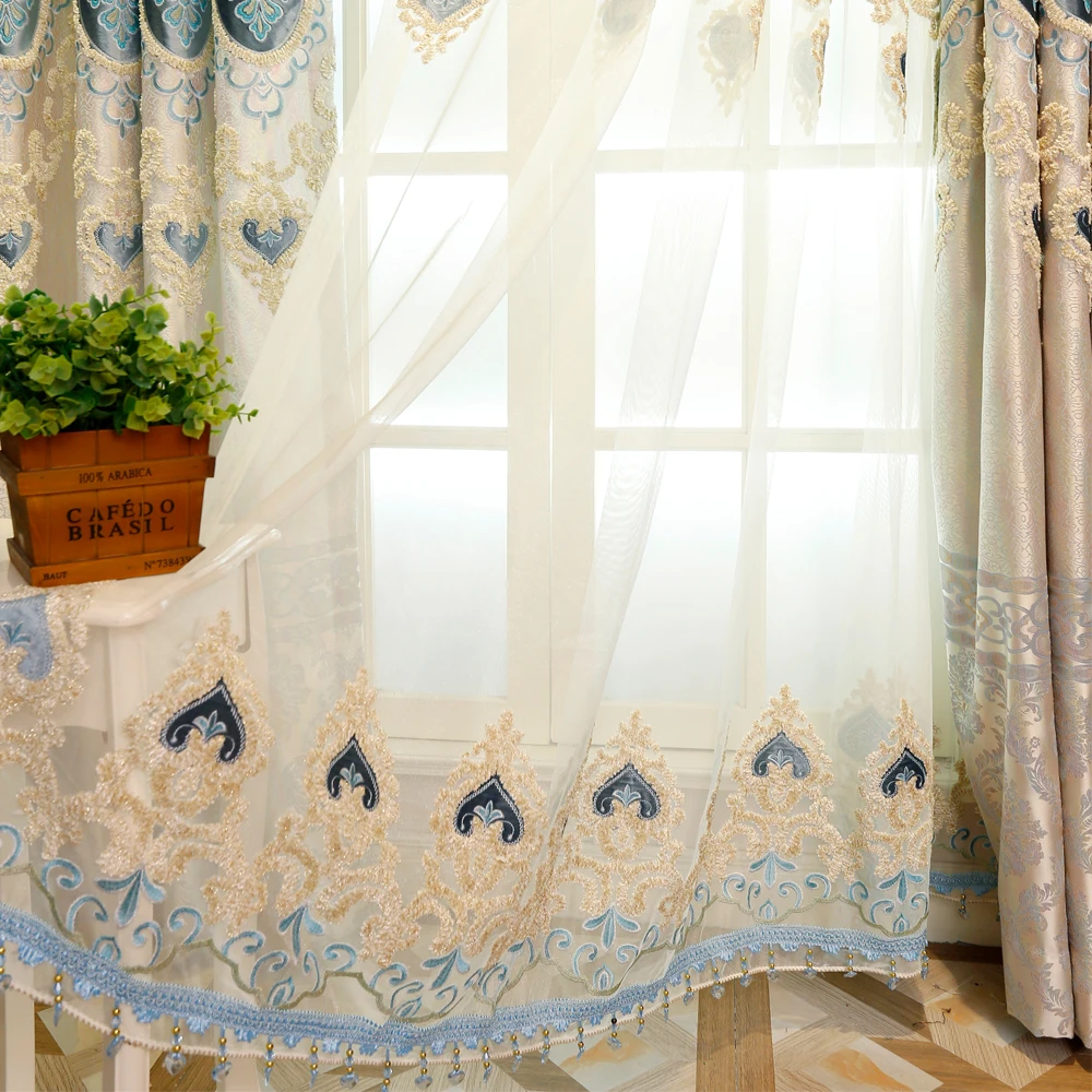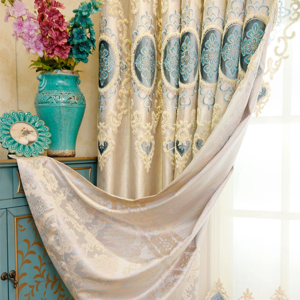 Жаккардовые занавески FYFUYOUFY в европейском стиле, шторы в стиле ретро с тонкой вышивкой, тюлевые затемняющие тканевые занавески на заказ для гостиной