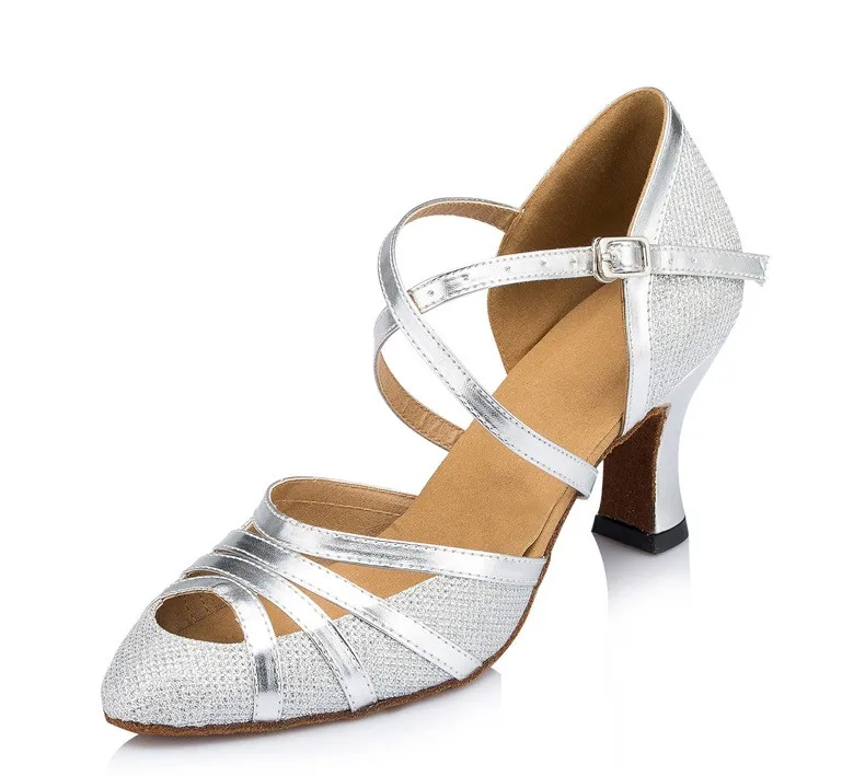 Женские туфли для латиноамериканских танцев WUXIJIAO, серые, цвета шампанского, серебристые бальные туфли на каблуке 8 см для осени и зимы