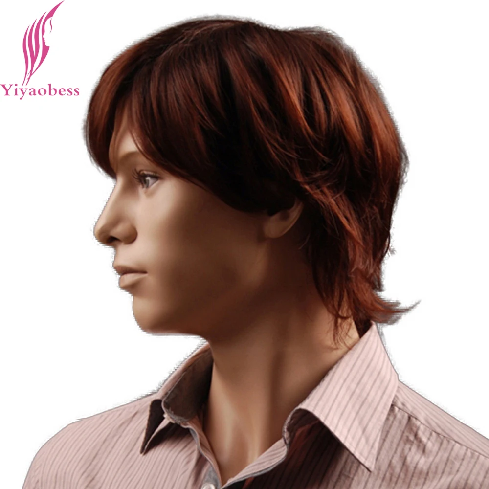 Yiyaobess 8 дюймов Пушистые синтетические волосы красновато-коричневые короткие мужские парики натуральный шиньон японское волокно Бесплатная доставка