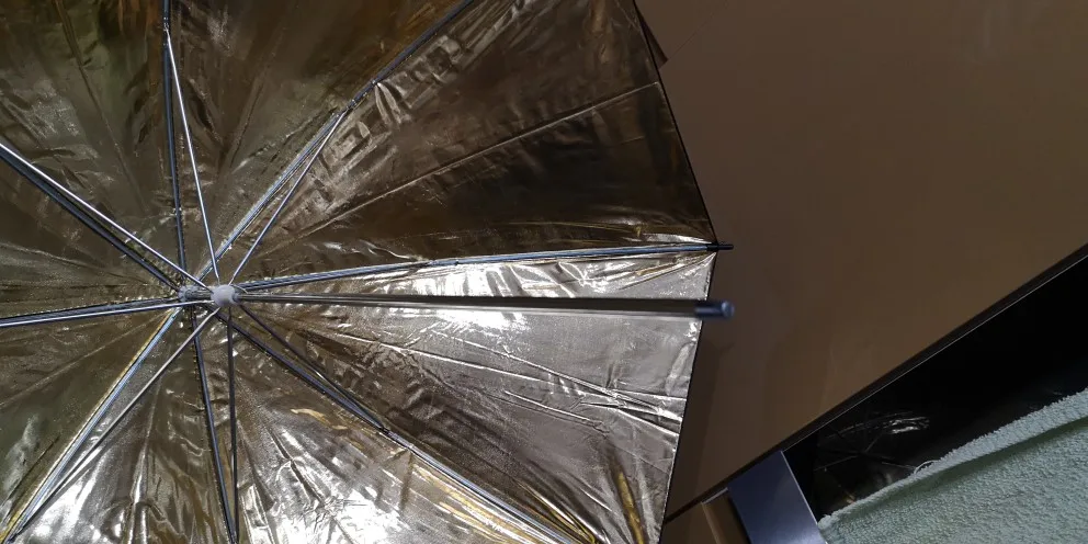 Светоотражающий отражатель зонта черного и золотого цвета выглядит так же, как на фото. Быстрая доставка. Спасибо.