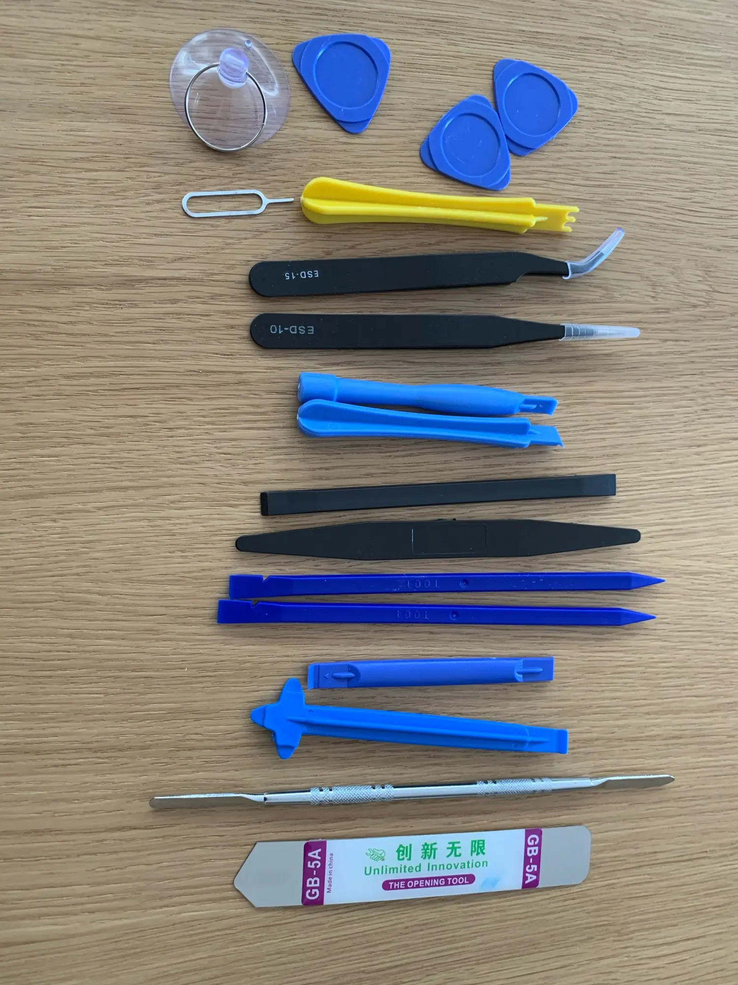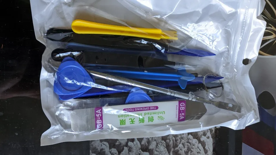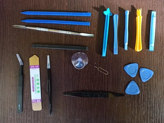 выглядит простовато, качество долго не прослужит, это к пластику. некоторые инструменты требует напильник, сгладить острые углы, особенно к железной гибкой пластине gb-5a, иначе экран поцарапает серьёзно. а так для простому человеку хватает на всякий случай жизни. кстати, всё на месте, ничего не утаили.