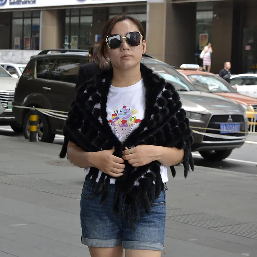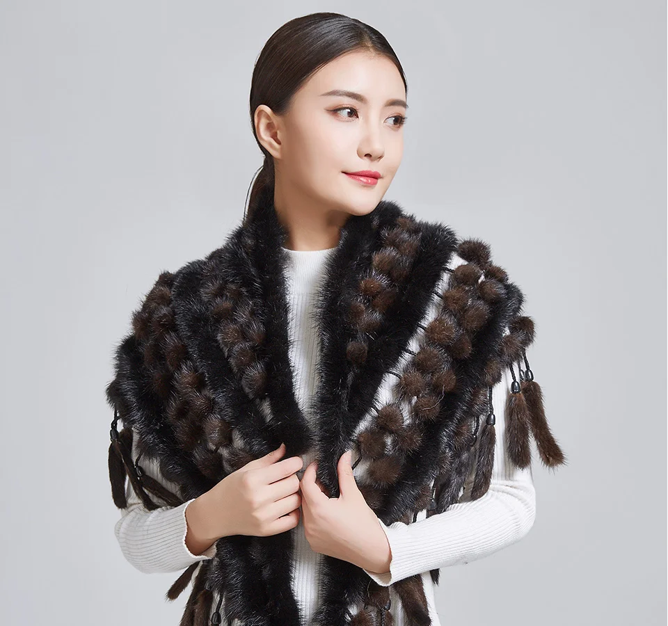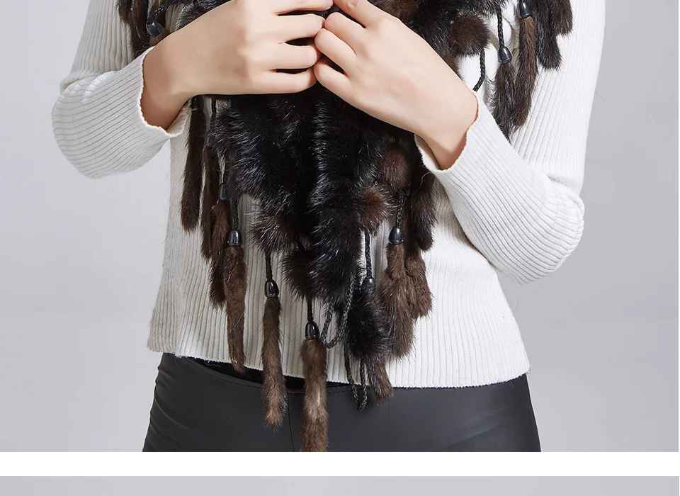 Зимний женский шарф из меха норки натурального цвета с крючком, модный красивый теплый.