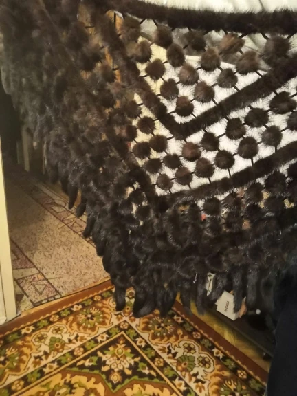 Отличное качество и довольно большой размер - при росте 170 см угол шали сзади доходит до самого низа спины. Впереди есть крючок, поэтому надежно фиксируется на плечах и не ездит. Хотела подарить - передумала, оставлю себе. Доставка до Минска чуть больше месяца, что неожиданно, так как доставка попала на новогодние праздники. Внешний вид шали как на фото. Упаковано было в картонную прочную коробку, а сама шаль лежала в шуршащем пакете. Вес посылки больше 600 грамм.