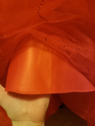 Определенно не свадебное платье, но отлично подходит для костюмированной вечеринки или для школьного танца. Плюсы: абсолютно стоит низкой цены. Прибыл быстро и точно по размеру, с широкими боковыми швами для регулировки. Полностью на подкладке. Имеет пластиковые склейки по центру спины и вдоль швов груди, а также вставки бюстгальтера для сохранения формы. Выглядит как на фотографии. Cons: Горловина имеет застежку-липучку, которая любит приклеивать к плечу, поэтому имейте в виду, что нижняя юбка закручена, но не подрезана. Нижняя часть юбки отделана пайетками, если нить была прорезана.