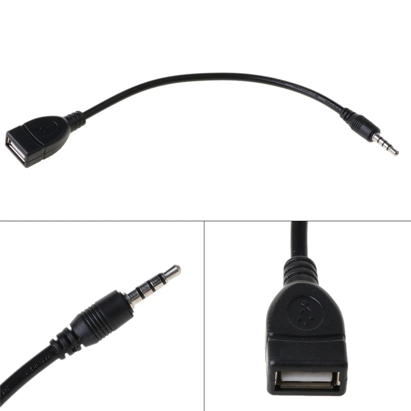 100% новый и высокое качество USB к 3,5 мм аудио разъем кабеля Стерео расширенный/музыкальный тон чистый и чистый 3,5 мм (муж.): подключите аудиокабель AUX порт Используется для автомобильной навигации, автомобильного аудио 3,5 разъем подключения к линии интерфейса AUX кабель для автомобиля, USB интерфейс подключения к U диск, реализация Авто играет песни USB флэш-диск; Разъем: штекер-гнездо Пожалуйста, подтвердите, что использование автомобиля имеет функцию декодирования MP3 для использования этого продукта Длина кабеля: около 14,5 см от края до края Цвет: черный Количество: 1 шт.