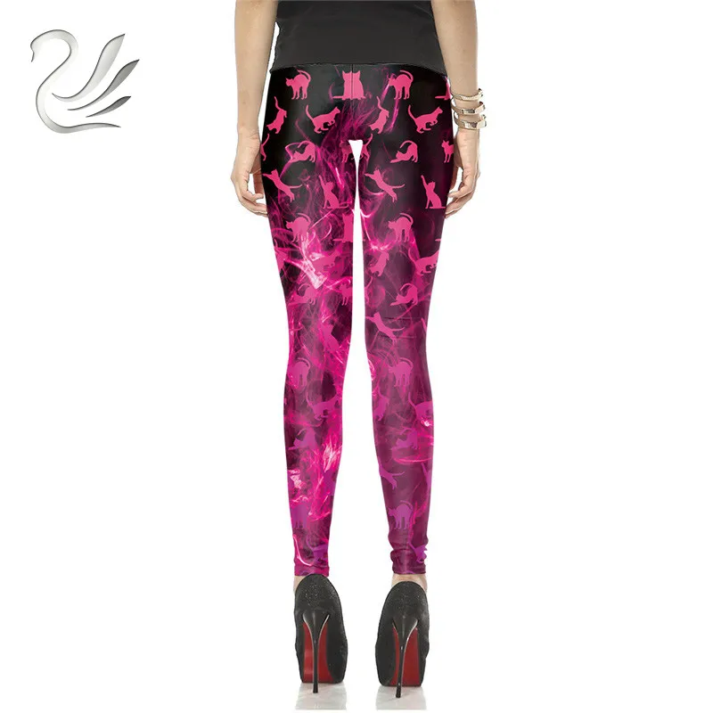 Леггинсы женские с 3D-принтом, модные штаны с принтом кошек, брюки с принтом, лето-осень