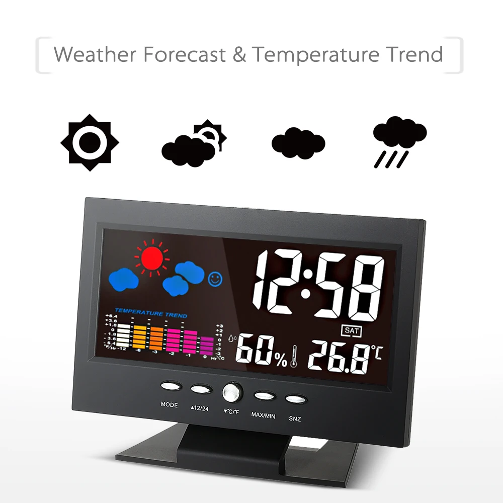 Цифровой измеритель температуры и влажности термометр гигрометр цветной ЖК-дисплей метеостанция часы календарь Vioce-активированная подсветка
