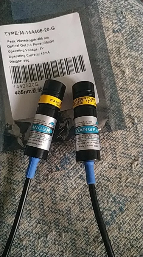 Получил товар в отлично упакованном состоянии, рабочие. Приобретал на 20мВт и 50мВт для фоторезиста, но когда достал из упаковок, перепутал, поскольку надписи на них абсолютно одинаковые. Теперь не знаю какой из них какой и на разную ли мощность.