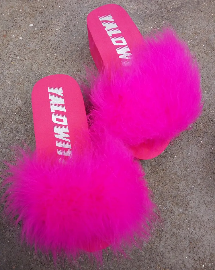 Пляжные женские шлепанцы, с мехом, с перьями страуса, мягкие