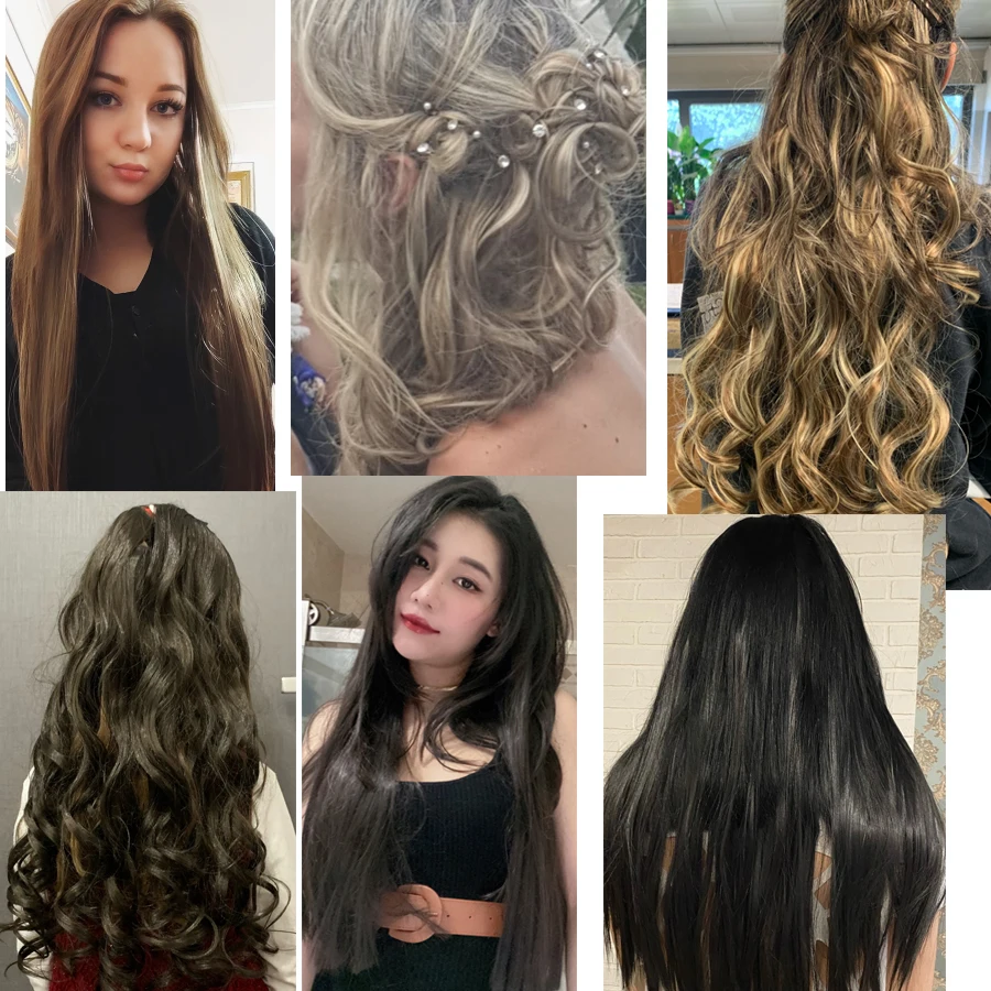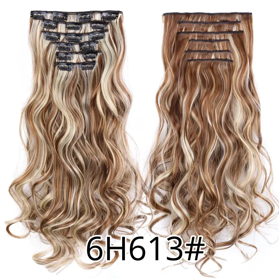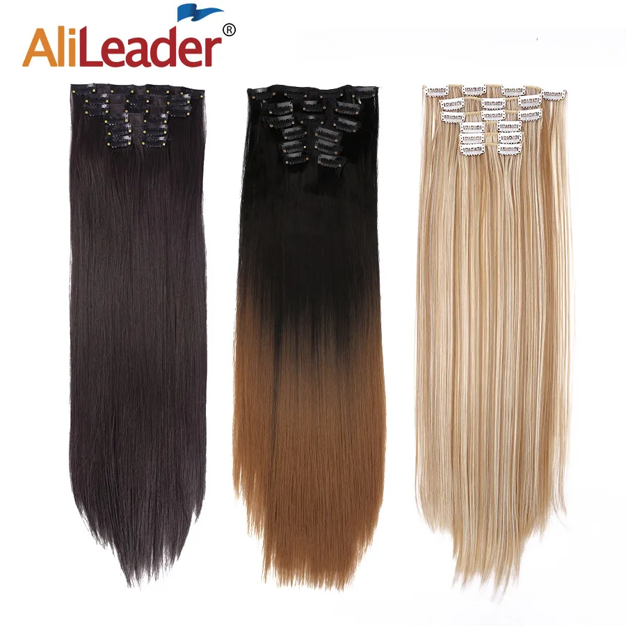 Синтетические накладные волосы Alileader 6 шт.компл. 22 дюйма 140 г прямой шиньон кудрявые 16 зажимов для волос Омбре Термостойкое волокно