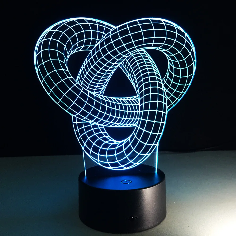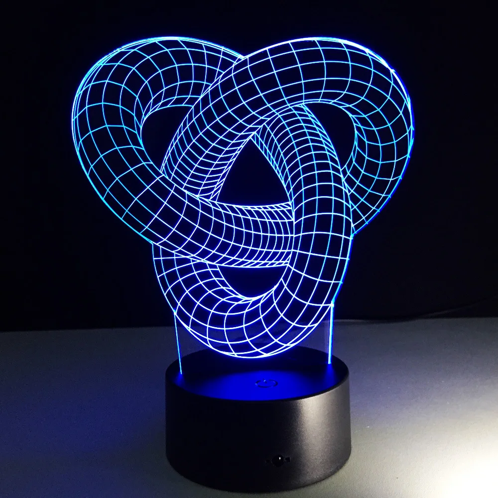 Художественная абстракция, современный 3D ночник с узлом в виде петли, цветной светодиодный настольный светильник с USB, лампа для дома, спальни, украшение для свадьбы