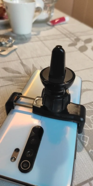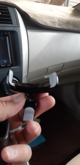 Queda super bien puesto en la rejilla de mi auto y sostiene bien el celular