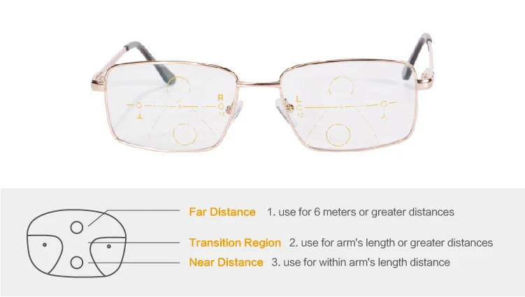 1. Перед размещением заказа обязательно подтвердите свой собственный диоптрий. Прогрессивные очки для чтения с мультифокусом имеют две области для поиска: область вверх-для поиска дальней и нижней области-для поиска рядом. Расстояние зрачка для очков массового производства составляет 63 мм (± 2 мм).