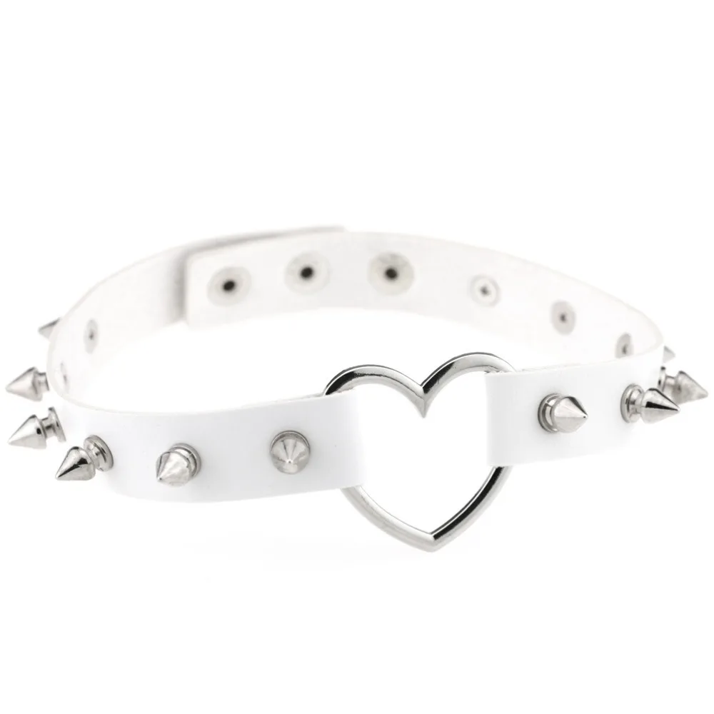 Женский чокер из искусственной кожи, ошейник с пиками в форме сердц...