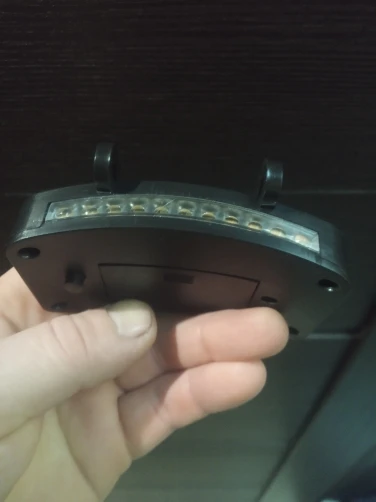 Брал взамен аналогичного подаренного приятелю. В этом оказалась пара огорчивших нюансов: крышка батарейного отсека образует щели с корпусом, особенно заметна щель на поперечной линии, пружинный контакт центральной батареи смещён в сторону, что мешает нормальной установке батарейки.