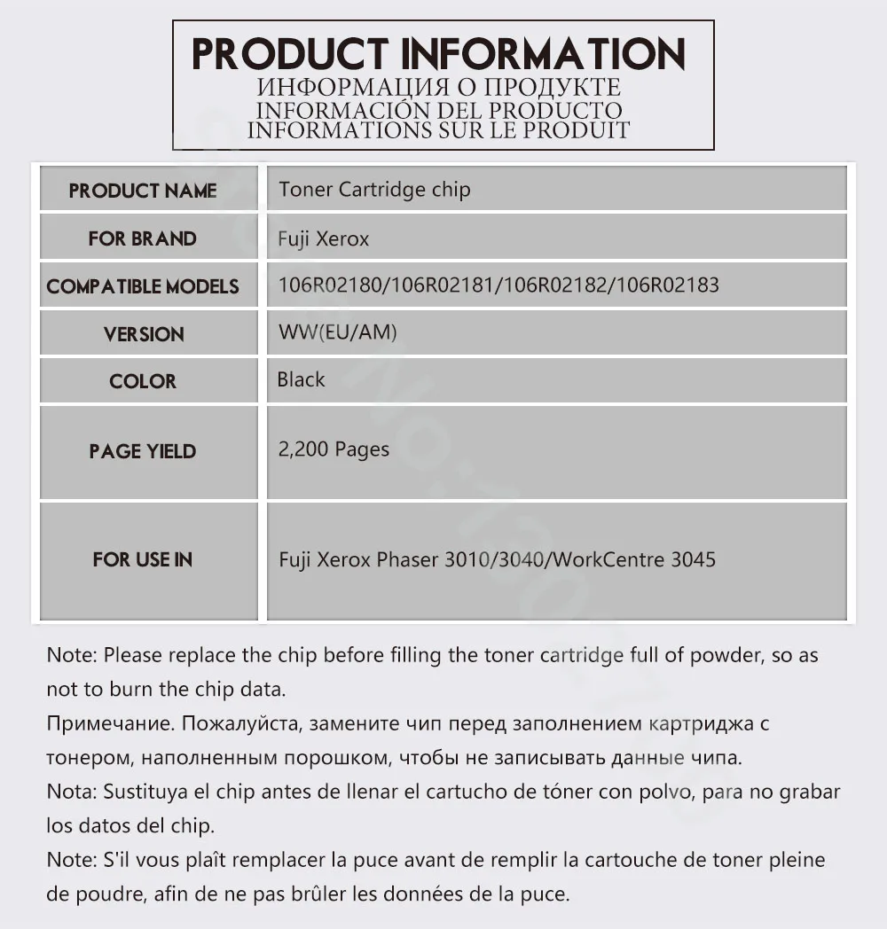 Чип для картриджа с тонером высокой емкости 106R03480 106R03690 106...