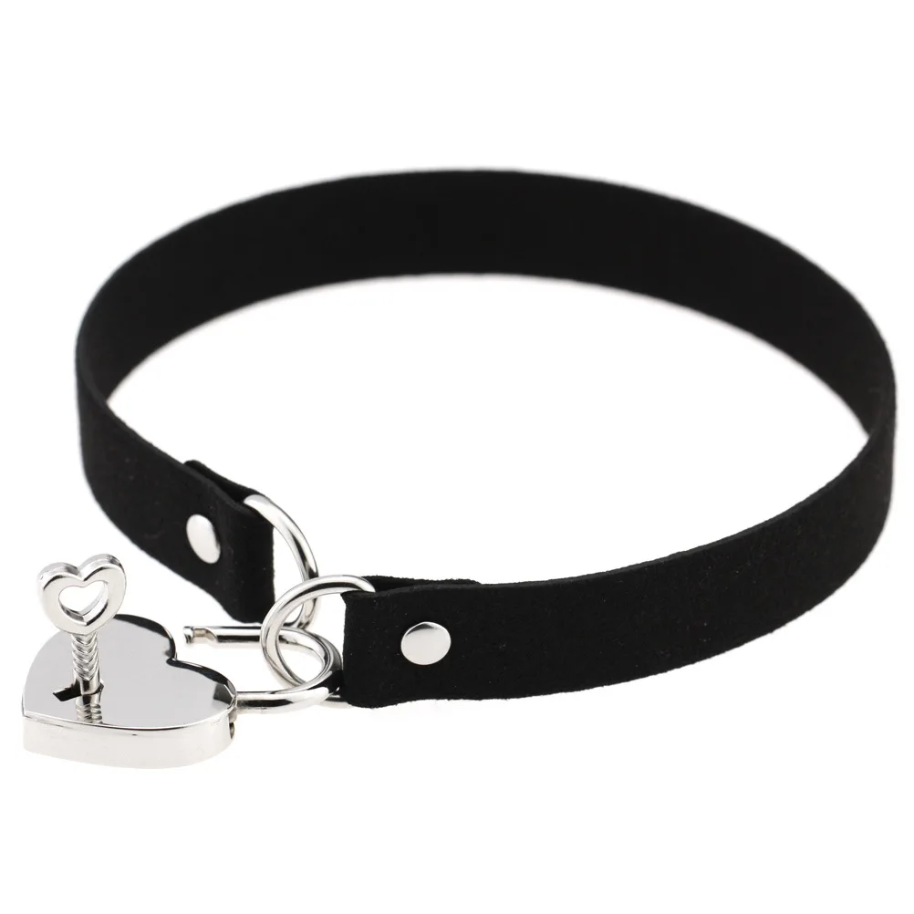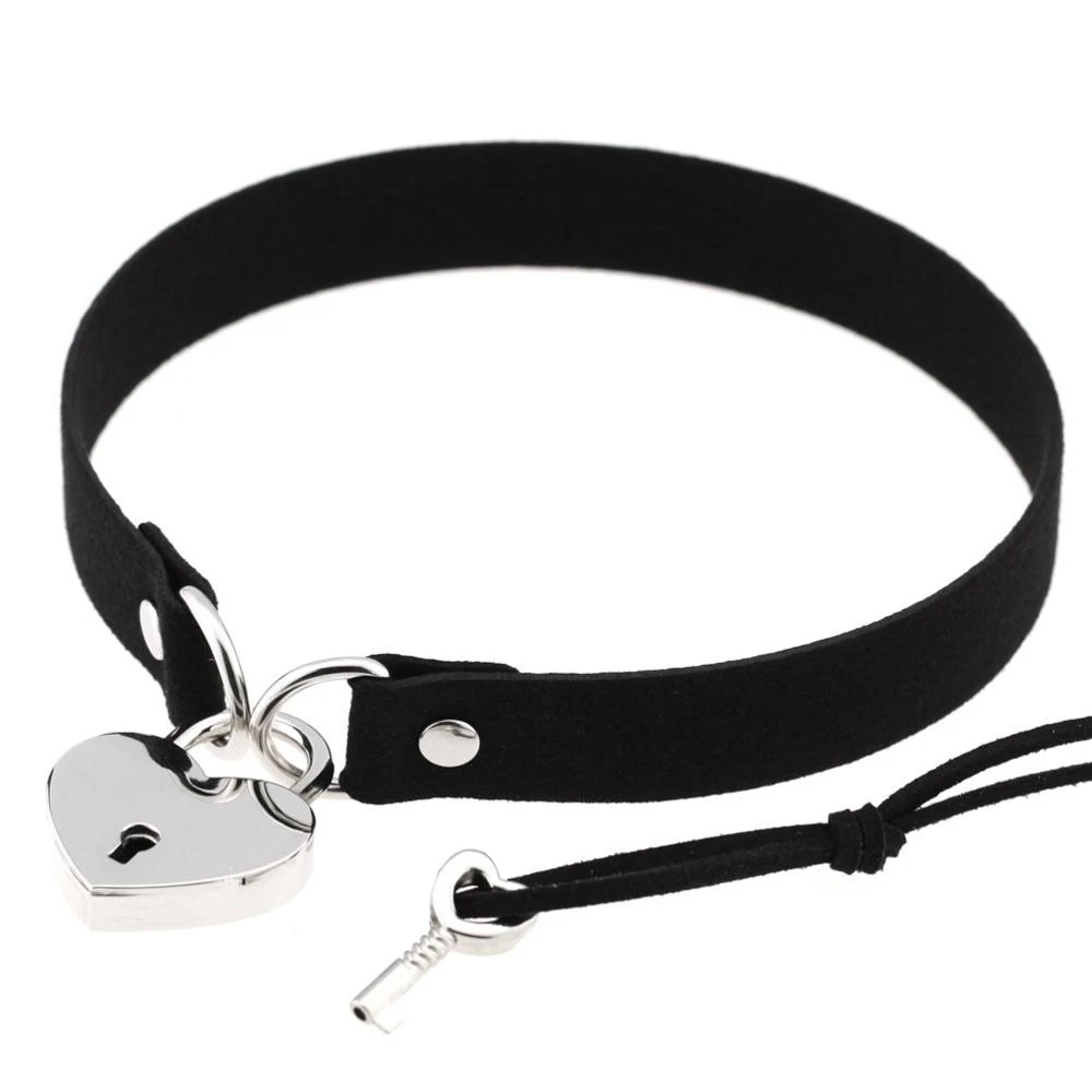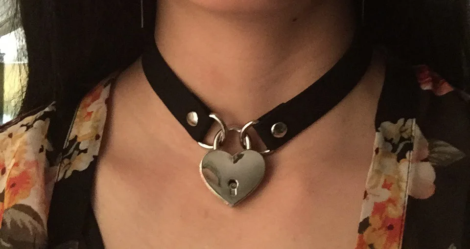 Ошейник-чокер Женский, черный, с металлическим замком, в форме сердца