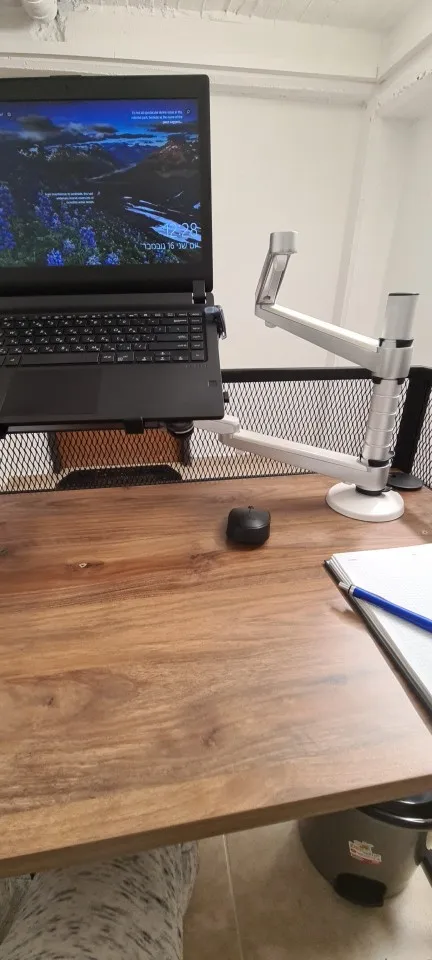 Szybka wysyłka z magazynu w Polsce. Produkt otrzymałem drugiego dnia po wpłacie. Paczka zawierała wszystkie wymienione elementy w ogłoszeniu. Dwa ramiona i stojak zostały dobrze zapakowane i chronione przed uszkodzeniami. Reszta elementów była zapakowana w mniejsze tekturowe pudło oraz wszystko miało na sobie folię ochronną. Po rozpakowaniu i zmontowaniu ramienia okazało się bardzo stabilne chodź podchodziłem do tego elementu sceptycznie. Laptop na uchwycie trzyma się pewnie i nie chwieje się przy korzystaniu z przycisków. Jak dla mnie nawet masywna i pewna konstrukcja. Jak najbardziej polecam produkt. Odstraszać może cena wysyłki ale z promocjami warte zakupu jak chcemy zrobić więcej miejsca na biurku lub przenieść laptop w inne miejsce z szybkim dostępem. Monitora nie montowałem bo brak ale na drugim ramieniu mam przygotowaną pułkę aluminiową do przykręcenia pod mysz i klawiaturę i wtedy wypowiem się więcej o stabilności konstrukcji. Na chwilę obecną jestem zadowolony z zakupu.