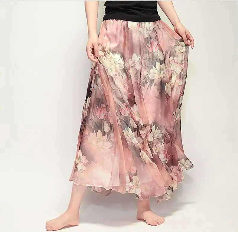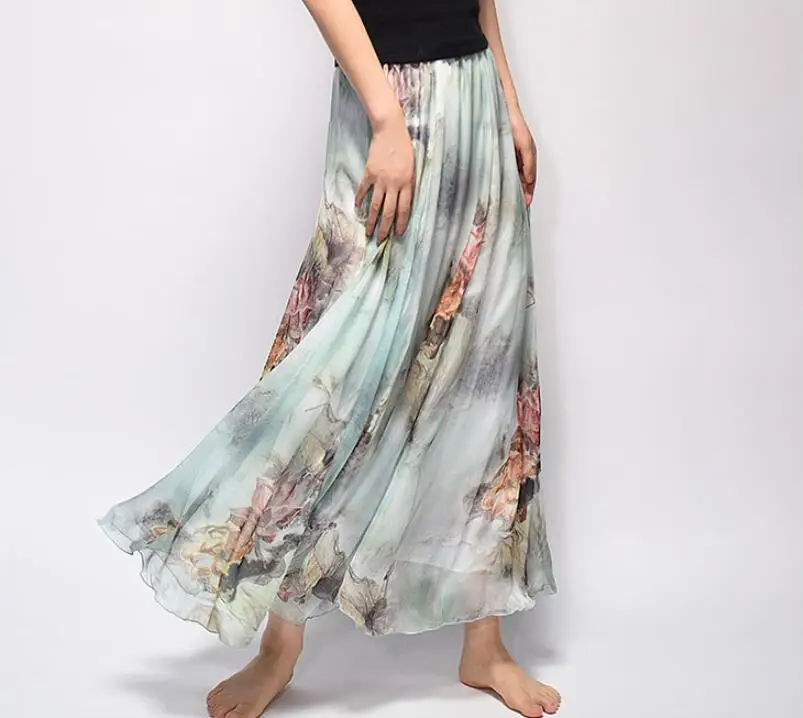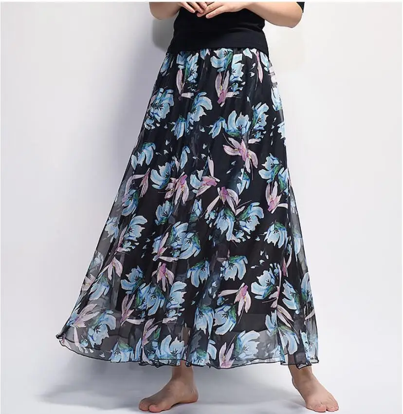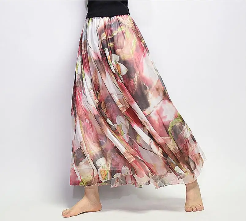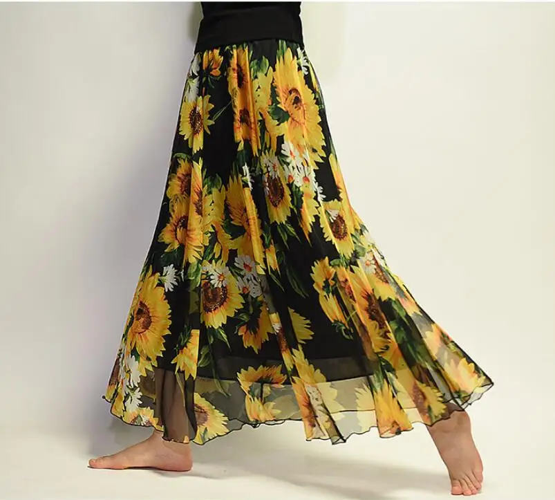 Летняя винтажная шифоновая юбка-макси в богемном стиле с цветочным принтом, пляжная юбка в пол в стиле бохо, 2022