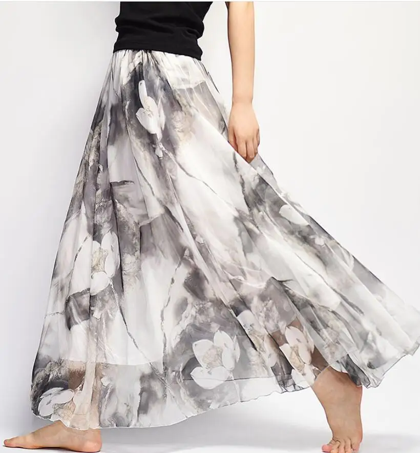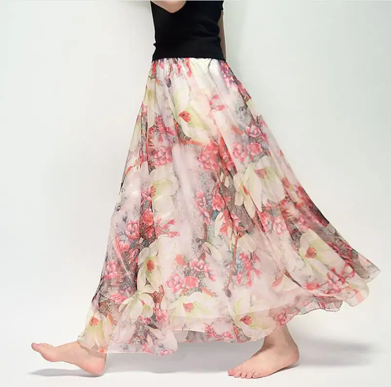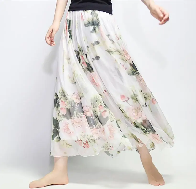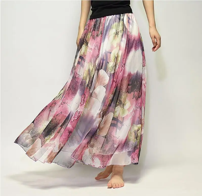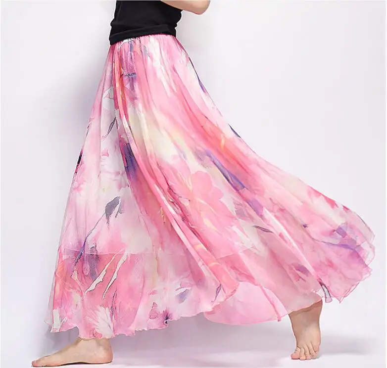 Летняя винтажная шифоновая юбка-макси в богемном стиле с цветочным принтом, пляжная юбка в пол в стиле бохо, 2022