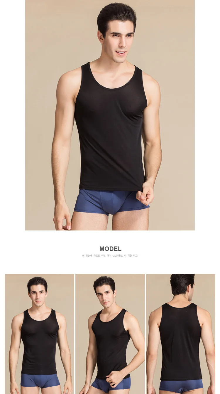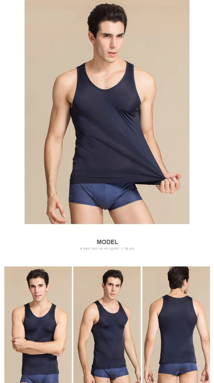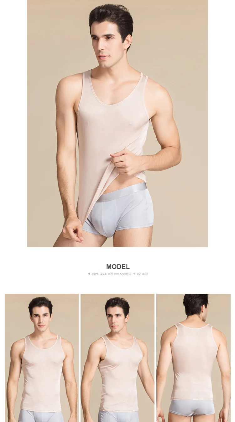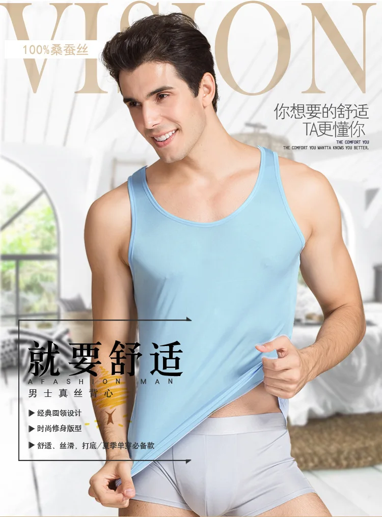 Мужские майки, 100% натуральный шелк, одноцветные майки для мужчин,...