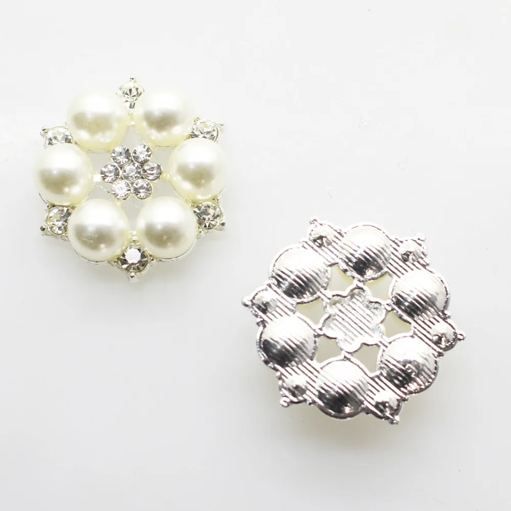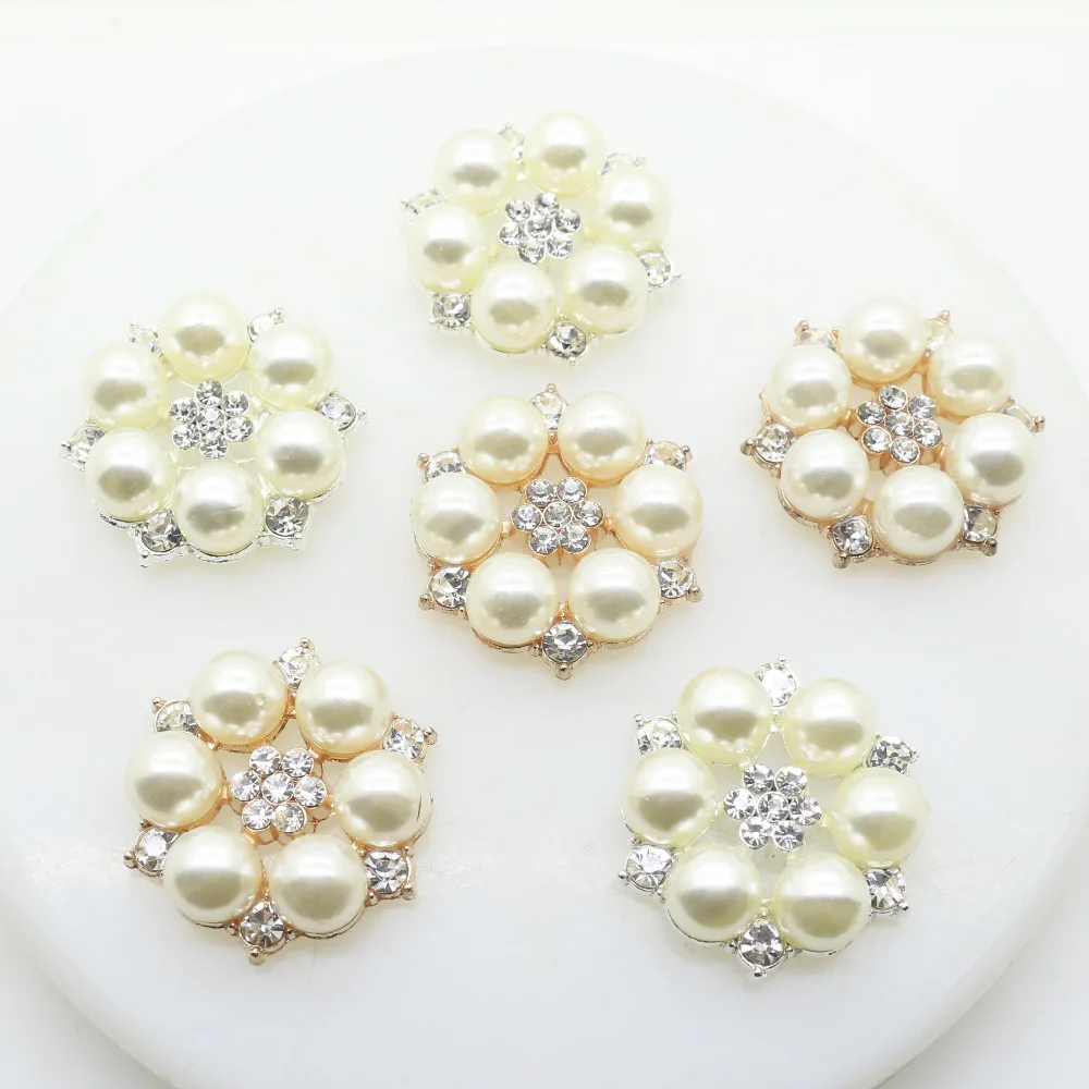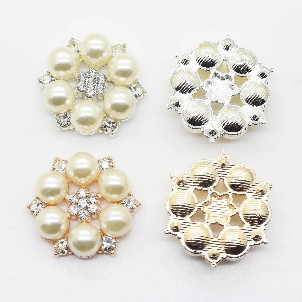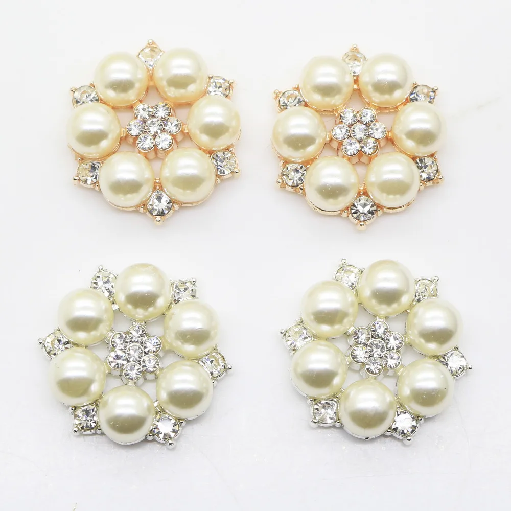 Металлические круглые стразы с кристаллами и жемчужинами, 27 мм, 10 шт.