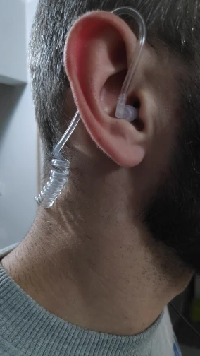 Классная штука, заушный крючок можно под себя подрегулировать, обрезав лишнее, звук нормальный, понравилось