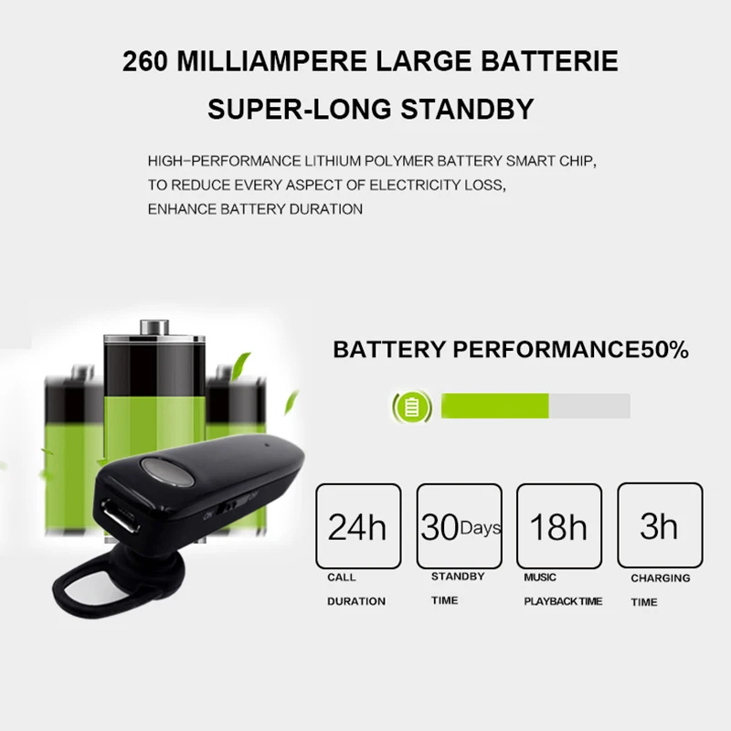 Версия Bluetooth 4,0, Поддерживаемые протоколы: HFP, HSP, A2DP, AVRCP, время воспроизведения музыки: около 22 часов, Время разговора: около 24 часов, время работы в режиме ожидания: около 30 дней, время зарядки: 3 часа, главный чип: чипы CSR8615, Рабочая частота: 2,4-2,4835 ГГц, эффективное расстояние: Доступно 10 м, размер: 58x15x11 мм, вес: 10 г, можно одновременно подключить два телефона, поддержка кабеля, поддержка выбора, дисплей питания IOS, патент на дизайн, поддержка ключа автоспуска камеры