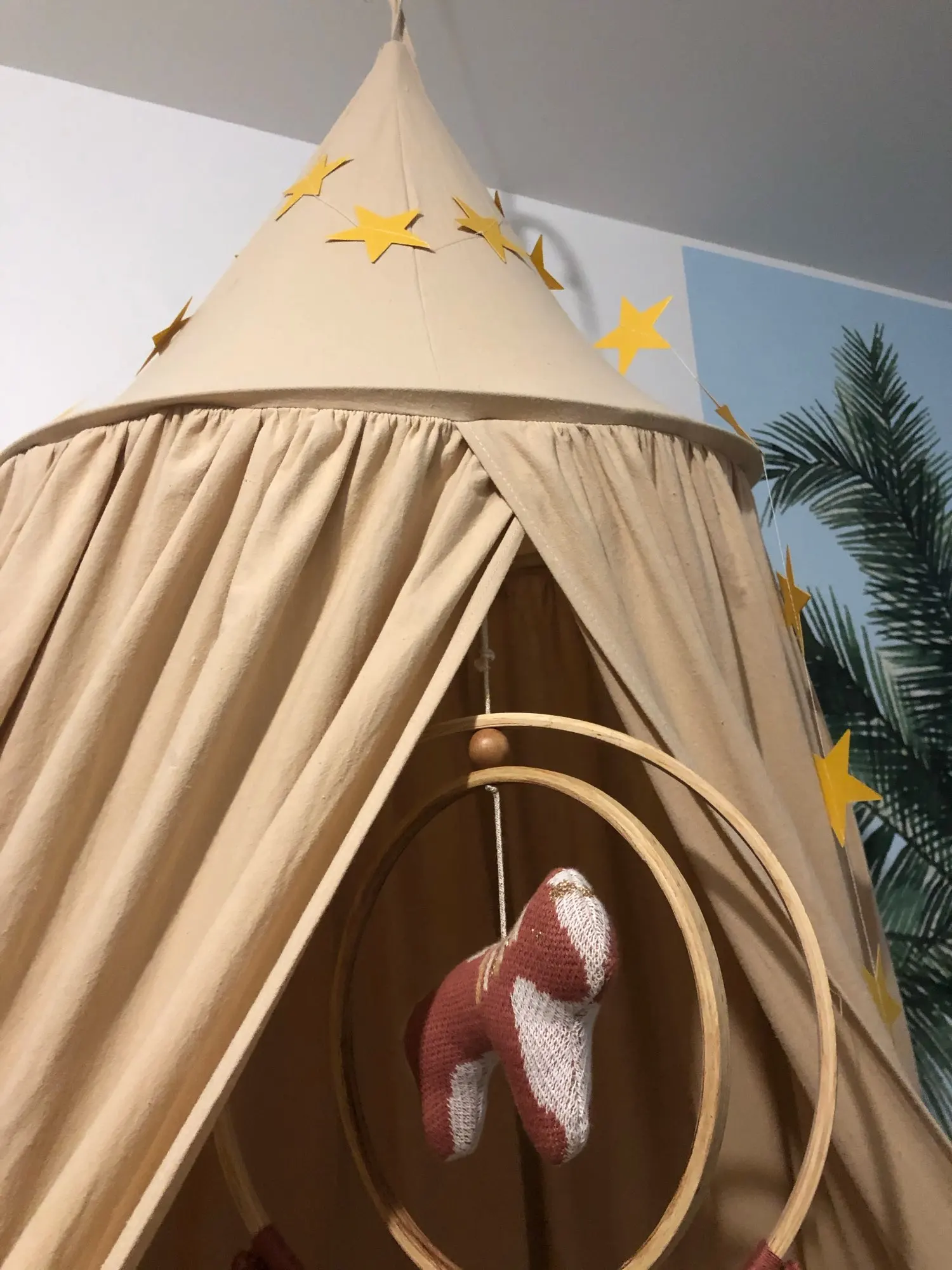 Единственный тент, который я получил, сделан из хлопка, не из дешевого чистого материала. Золотые звезды были добавлены в посылку в качестве бонуса.