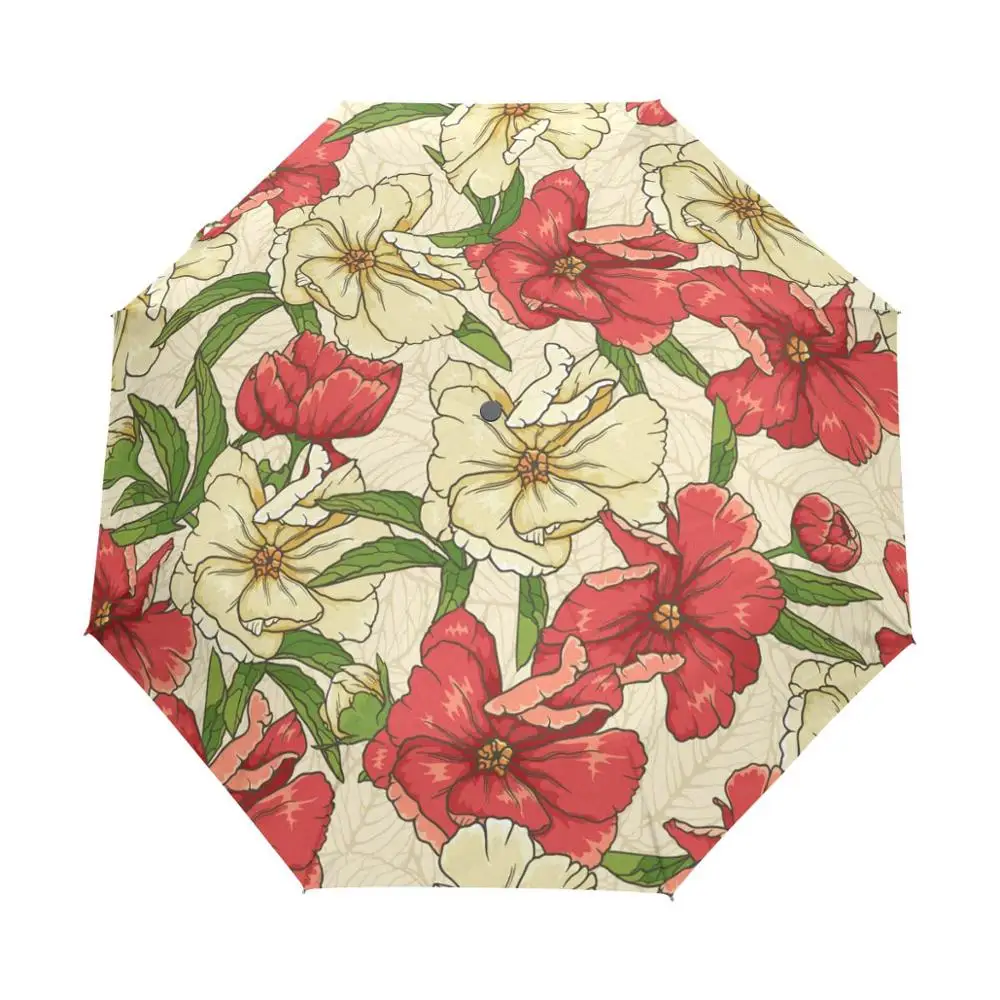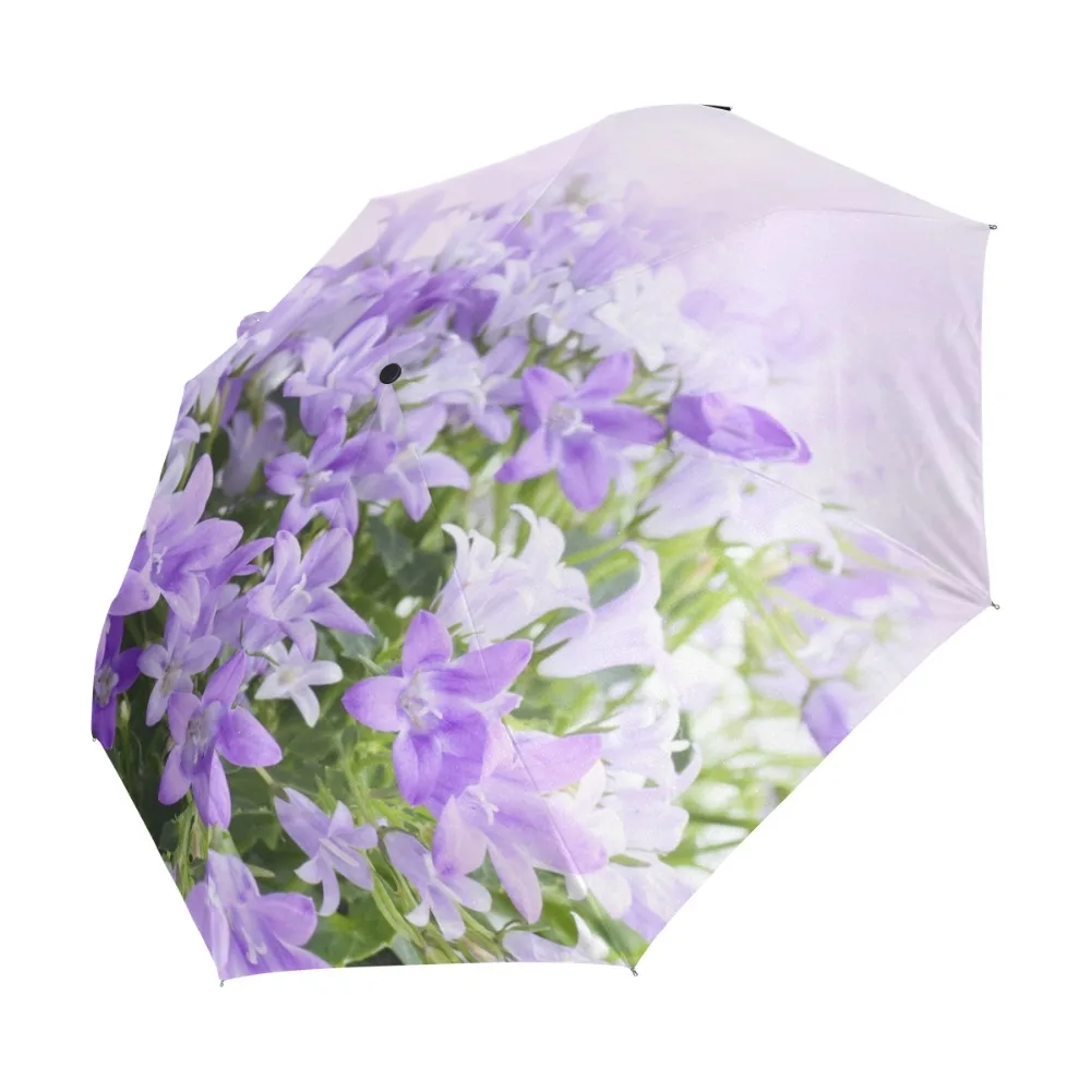 Женский цветочный Зонт с защитой от УФ-лучей, фиолетовый женский рюкзак, полностью автоматический зонт, 100% полиэстер, водонепроницаемый