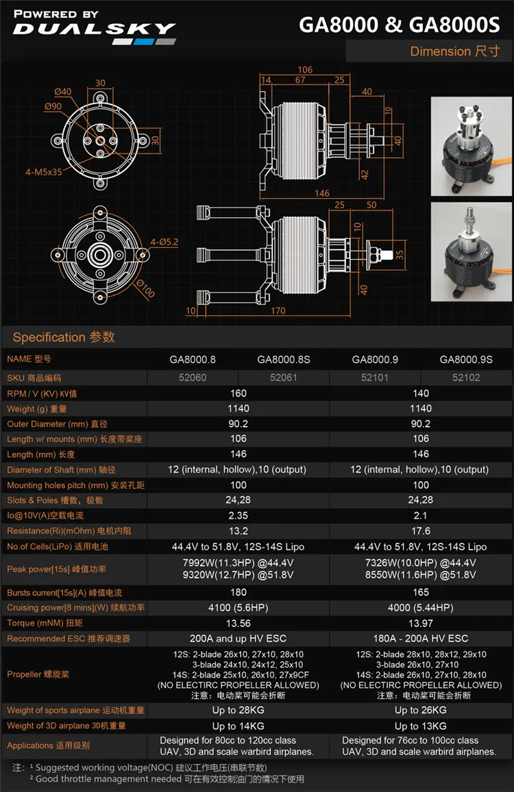 Двигатель Dualsky GA8000, высокомощный бесщеточный двигатель, модель самолета с неподвижным крылом, многовинтовой бензиновый двигатель 80-120 куб. См icon star icon star icon star icon star icon star