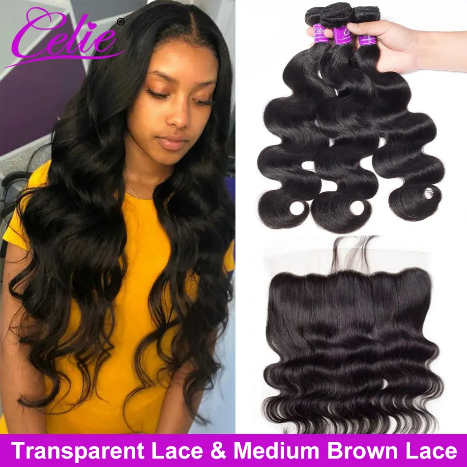 Celie Hd прозрачное кружевное фронтальное закрытие с пряди бразильские волнистые пряди с фронтальным человеческие волосы 3 пряди с закрытием