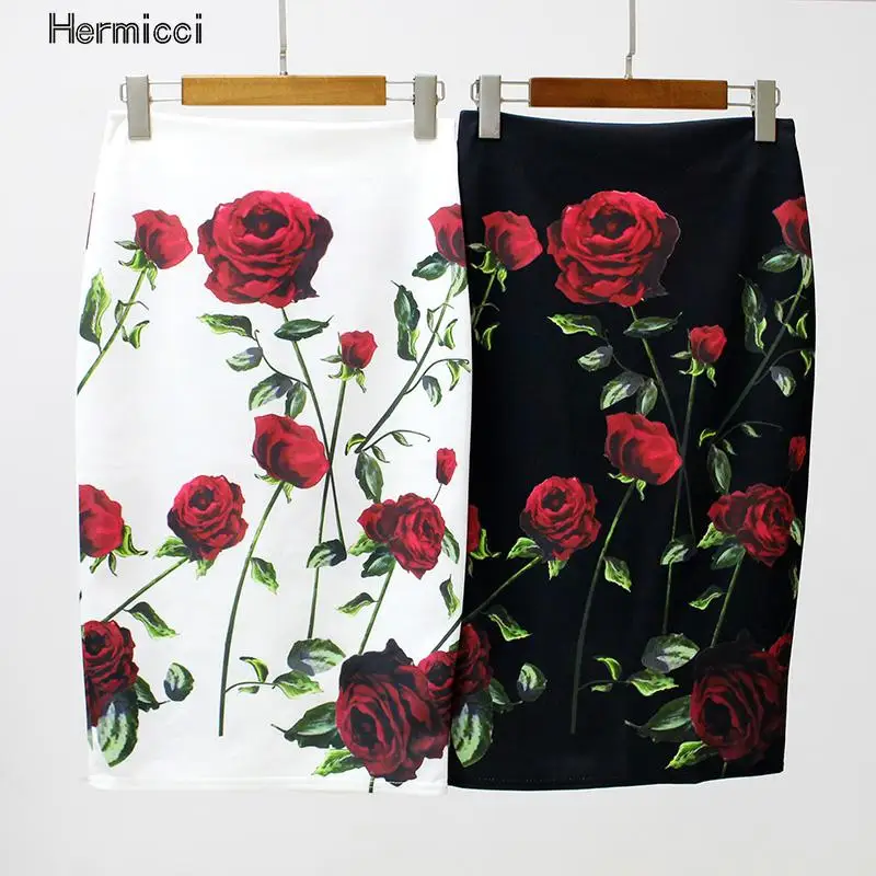 Юбка-карандаш Hermicci женская с завышенной талией, облегающая миди-юбка с большими цветами, приталенная с цифровым принтом, белого и черного цветов