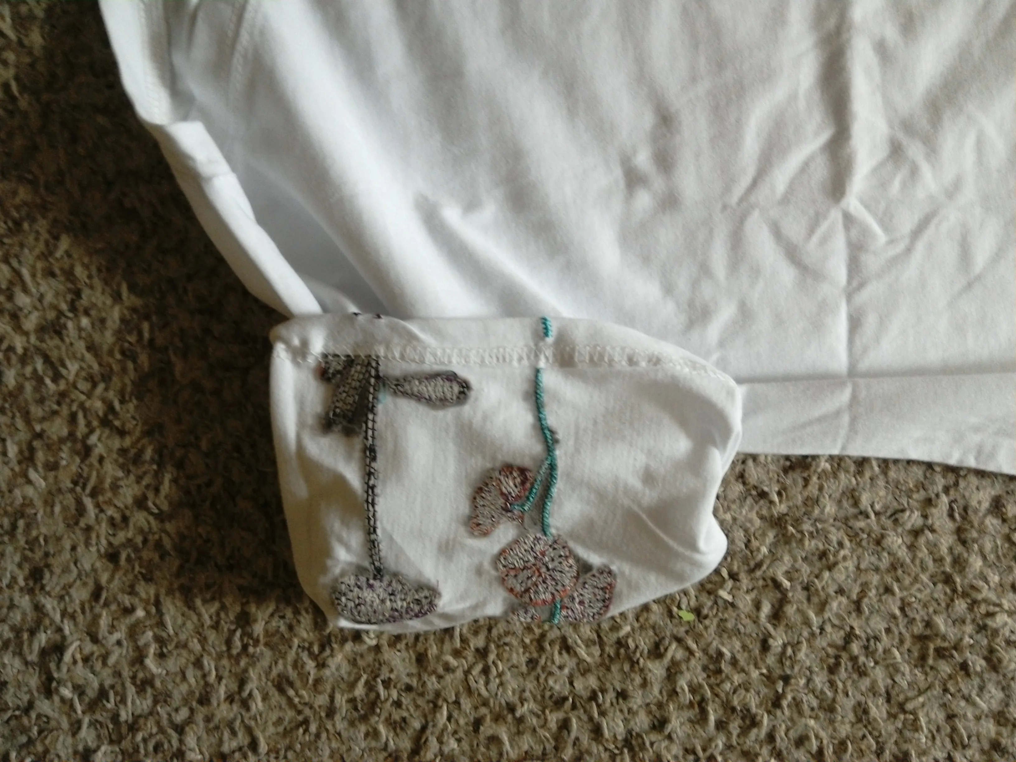 Маечка хорошего качества ! Пришла за месяц. Соответствует фото и описанию. Никаких ниток, вышивка и пошив аккуратные. Замеры видны на на моих фото. Трикотаж -хлопок! Внизу по бокам разрезики- по 6 см. Цвет -белоснежный. Рекомендую к покупке!