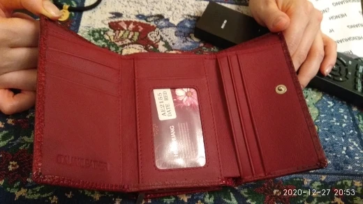 Замечательный кошелек. Был очень хорошо упакован. Резиночку для волос получила в подарок.