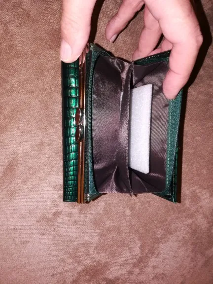 Получила кошелек Заказ пришёл быстро! Кошелек отличный кожаный блестящий .По размеру средний но очень вместительный. Много отделений под карточки под мелочь под купюры. То что надо! Продавец положил подарочек Очень приятно Спасибо большое продавцу Рекомендую!!!
