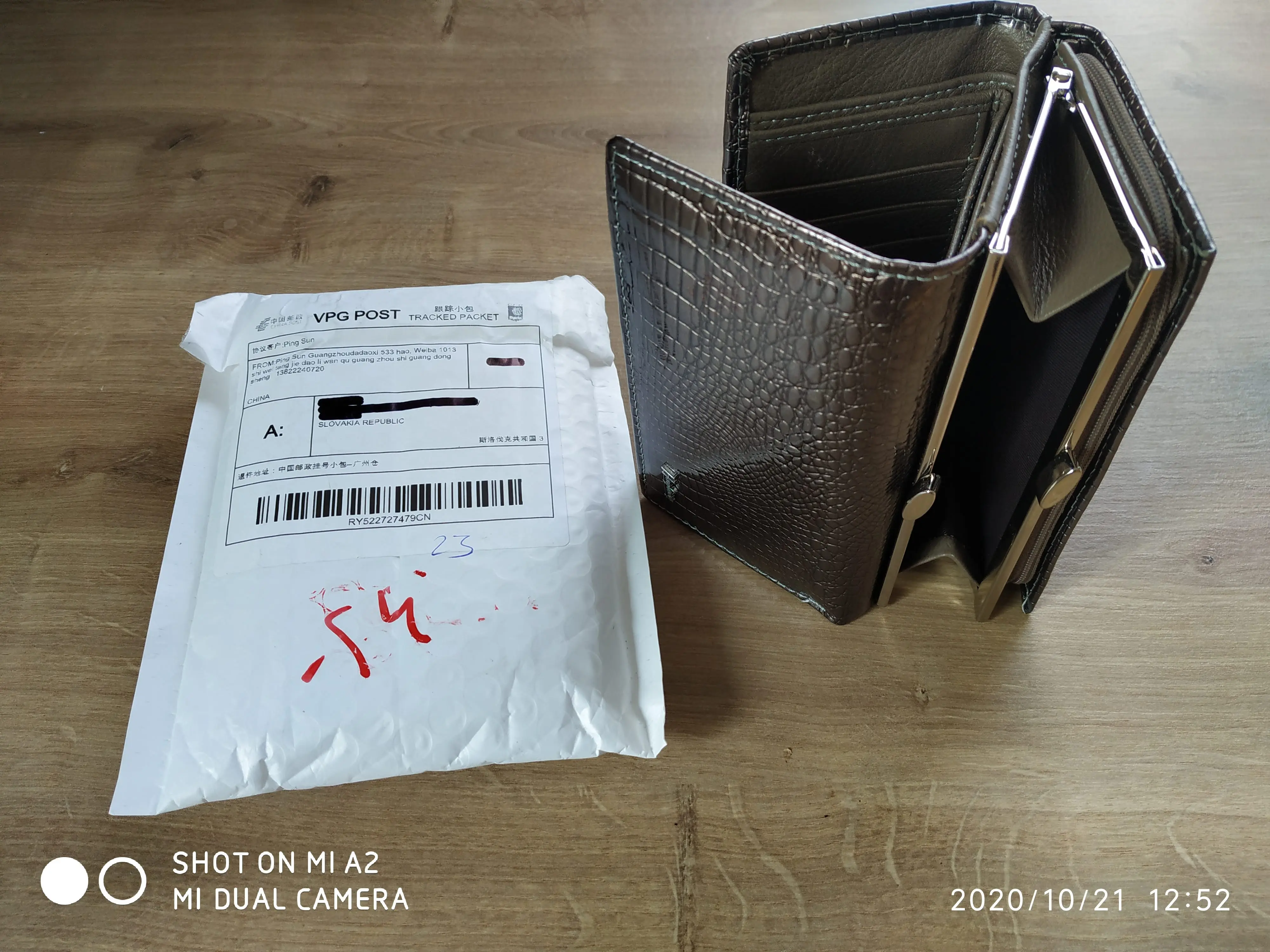 Заказ сделала 5 сентября, а получила в Новополоцке 15 октября. Красивый кошелек, только туго открывается. Внутри был кусочек кожи. В подарок положили резиночку.