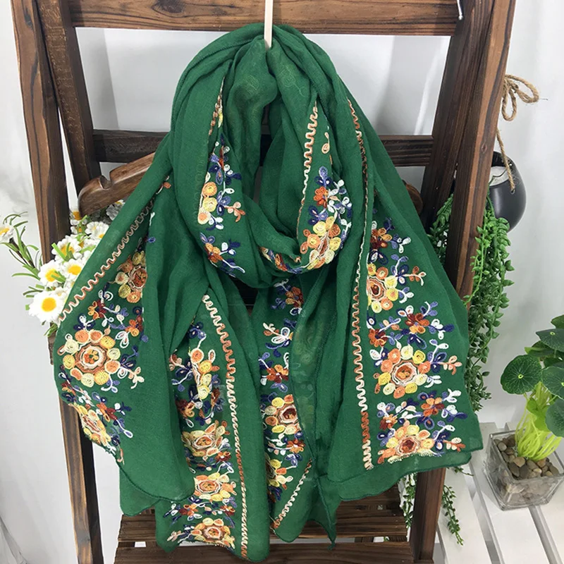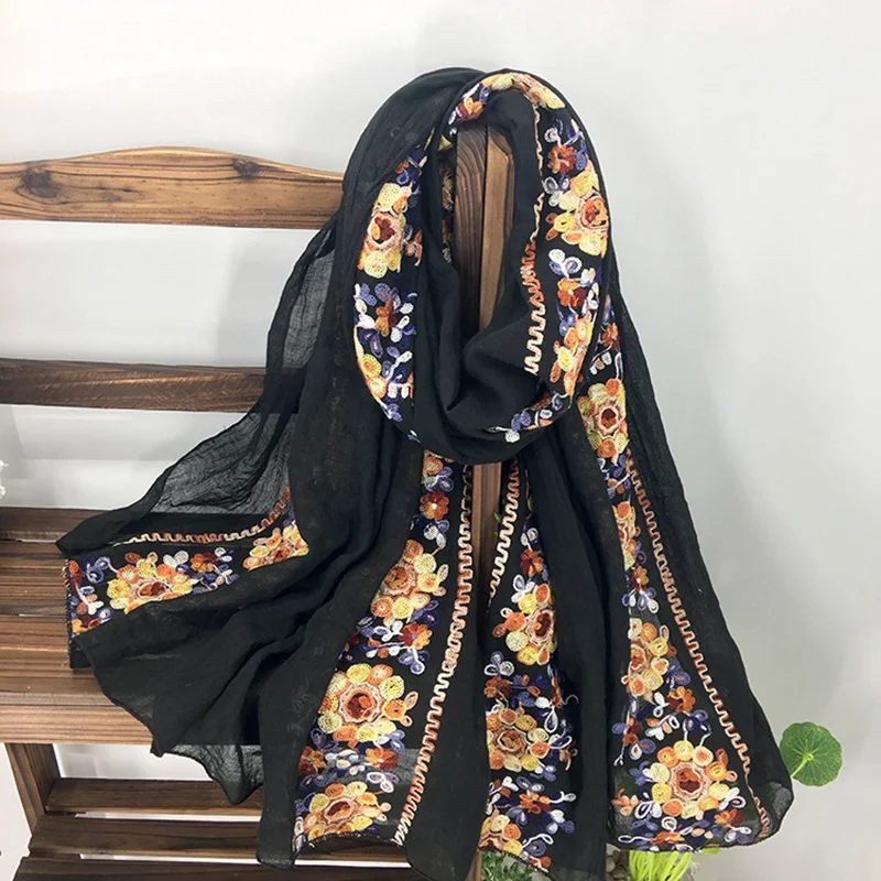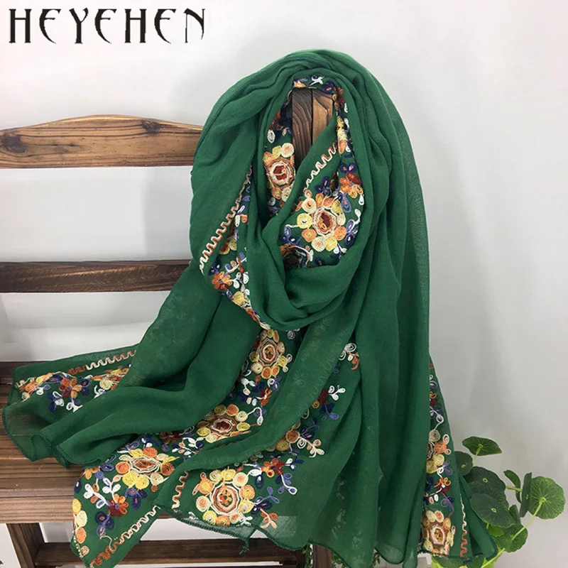Японская вышитая Женская бандана, зимний хлопковый полиэстер, длинный шарф, мусульманский женский хиджаб HY08