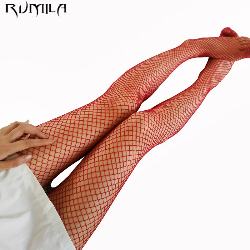 Красные пикантные женские сетчатые чулки средней длины с высокой талией, сетчатые Клубные колготки, вязаные сетчатые колготки, брюки, Сетчатое нижнее белье TT016