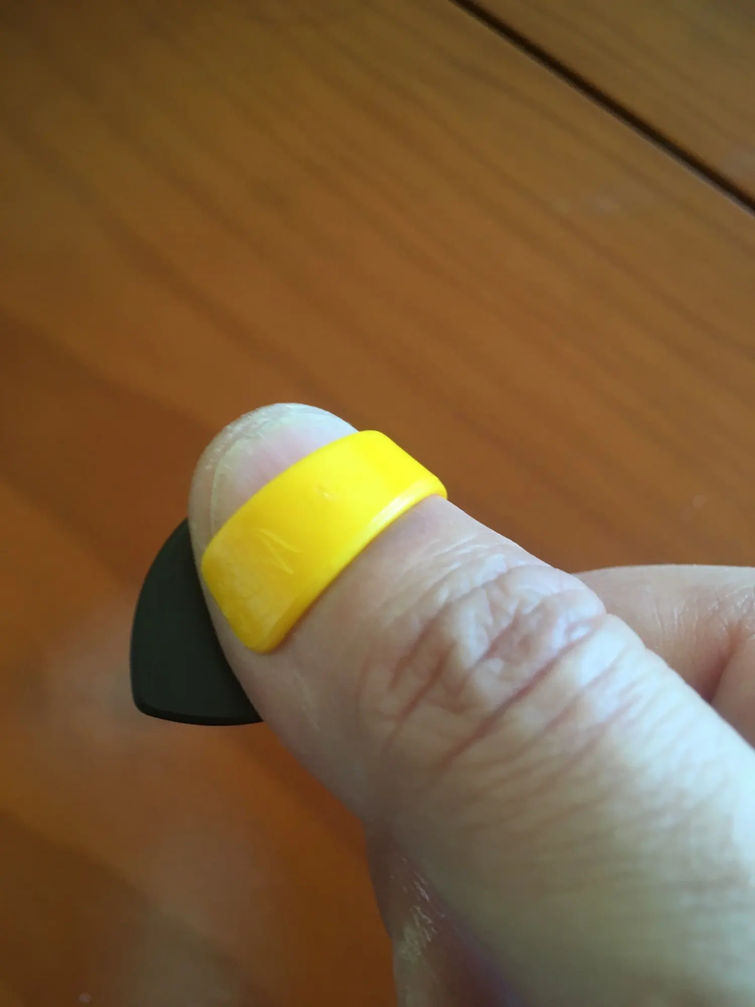 Хорошая штука, но надо привыкать. Искусственные фладжолеты делать почти не возможно. Так жа сильно давит на палец, дольше 30 минут носить невозможно, палец нимеет. Удобно для игры тэппинга. Тем кто ищет замену медиаторов Криса Бродерика, идеальный вариант