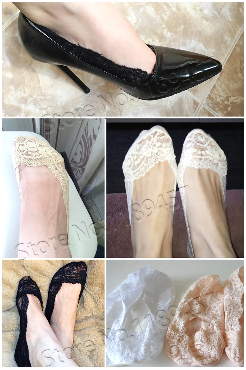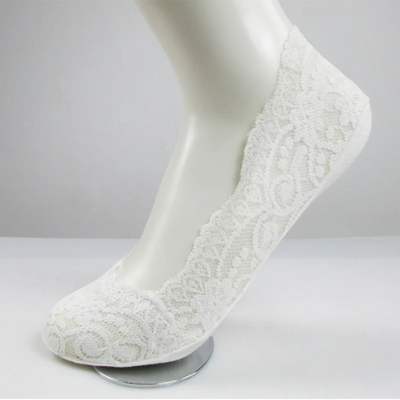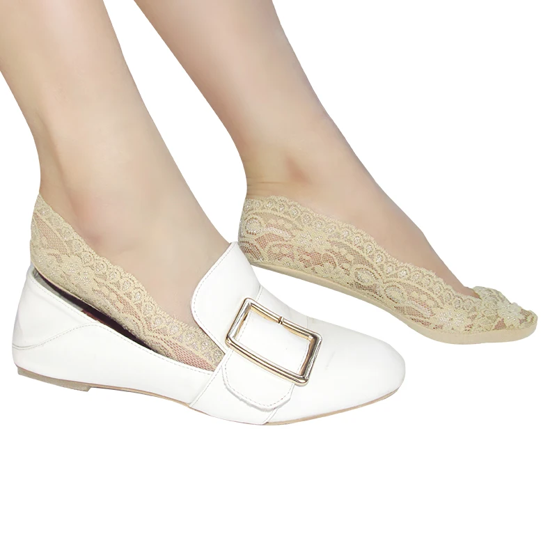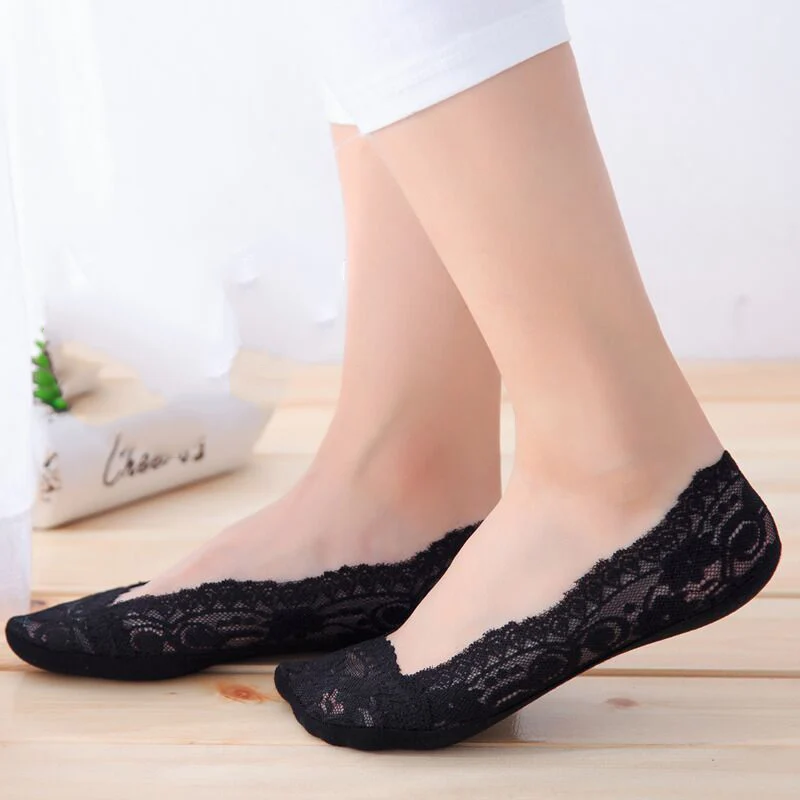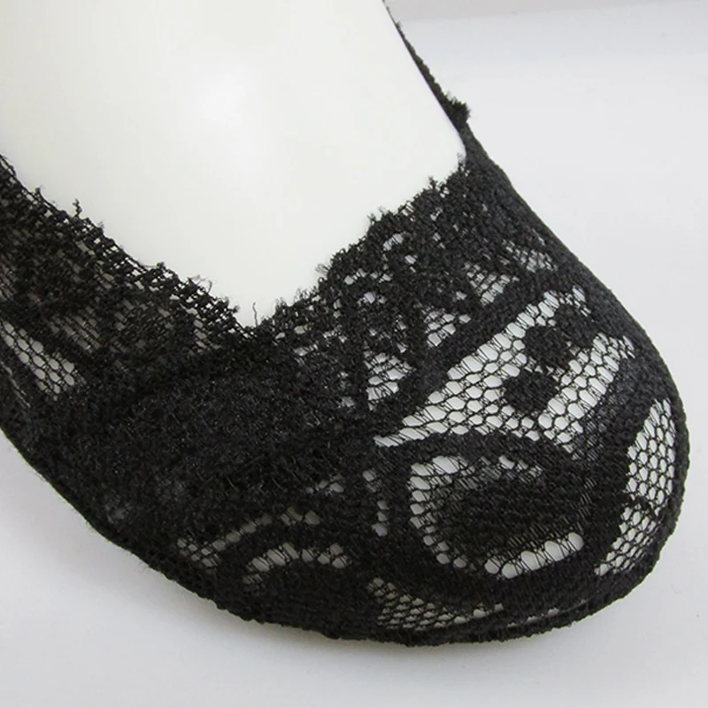 Носки-следки женские, кружевные, силикагелевые, Нескользящие, 3 пары, лето с хлопковой подошвой