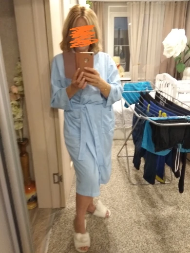 Этот банный халат потрясающий, ткань мягкая и легкая, я женщина-Доктор, этот предмет удобно надевать и снимать дома, при измерении роста 162 см, вес 55 кг, размер М очень хороший, Рекомендуемый цвет небесно-голубого цвета очень прост для меня, очень сосут и доставлен в течение 9 дней, так быстрая доставка, замечательно, спасибо за отправку мне хорошего продукта, желаю вашему бизнесу больше хорошего.